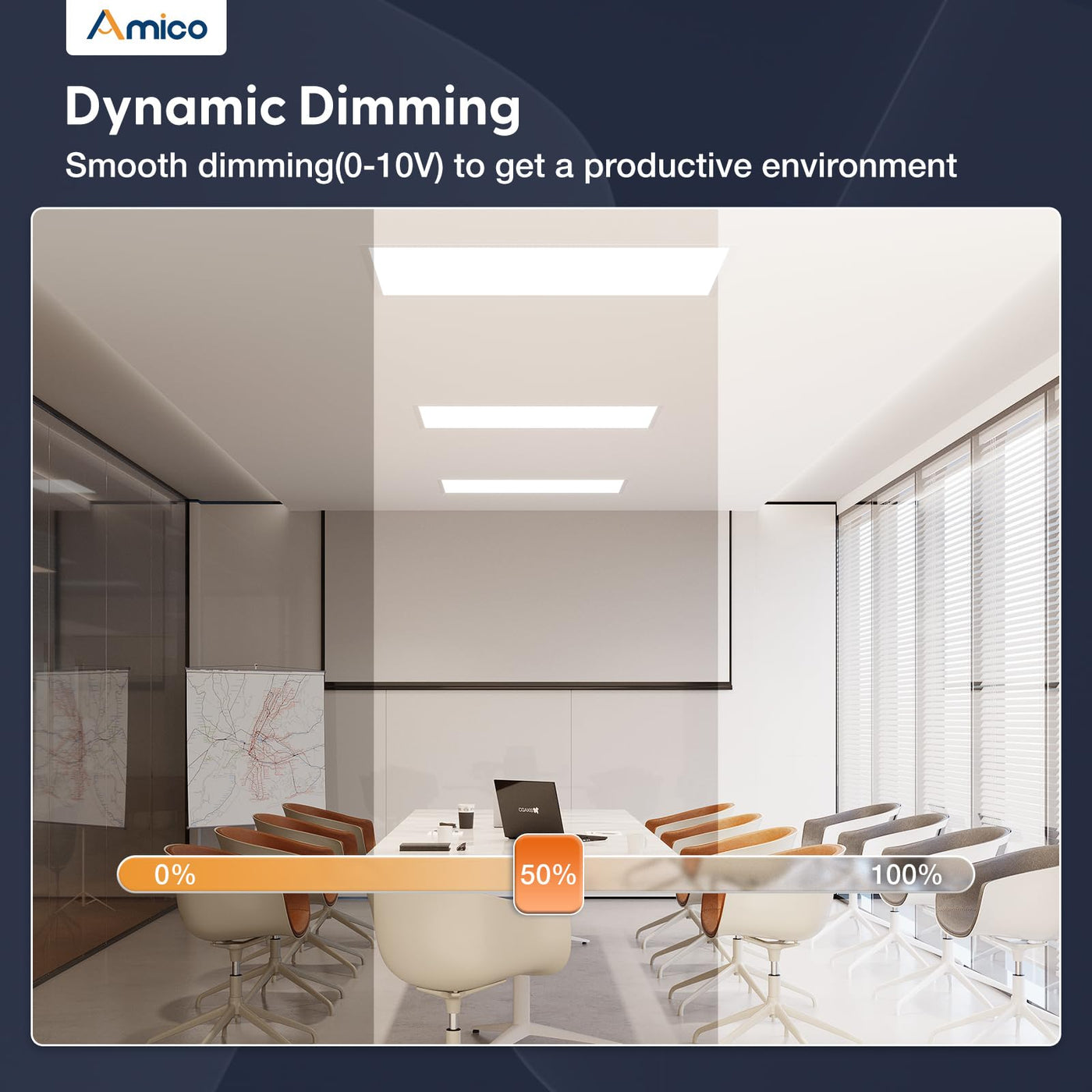 Q: Is the Amico LED Flat Panel Light dimmable?A: Yes, the Amico LED Flat Panel Light features a dimming option that lets you adjust the brightness to your desired level, making it suitable for various settings.