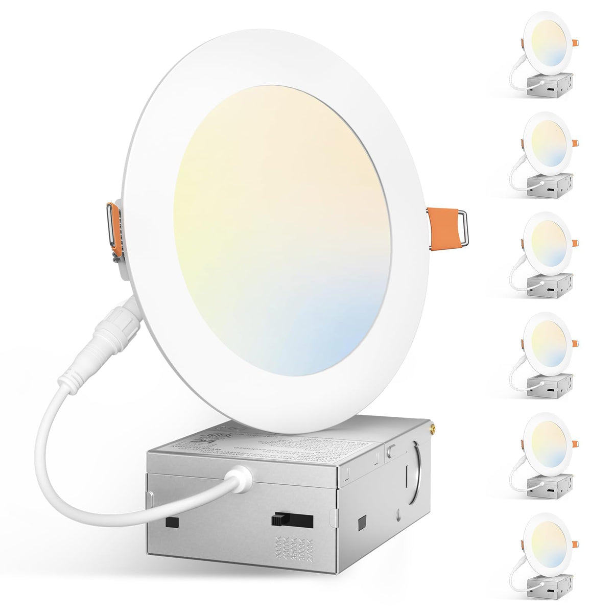 Amico 6 Pack 5 Inch 5Cct Ultra-Thin Led Recessed Ceiling Light With Junction Box