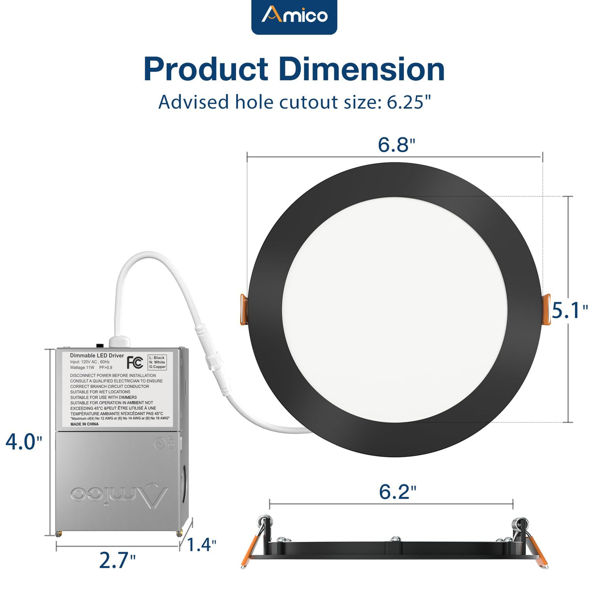Q: Is the Amico recessed lighting dimmable?A: Absolutely! The Amico Ultra-Thin LED Recessed Ceiling Light is dimmable, allowing you to adjust the brightness to your desired level for different occasions and moods.