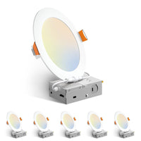 Amico 6 Pack 6 Inch 5Cct Ultra-Thin Led Recessed Ceiling Light With Junction Box, 2700K/3000K/3500K/4000K/5000K Selectable, 12W Eqv 110W 1050Lm Brightness Dimmable Canless Wafer Downlight, Etl & Fcc