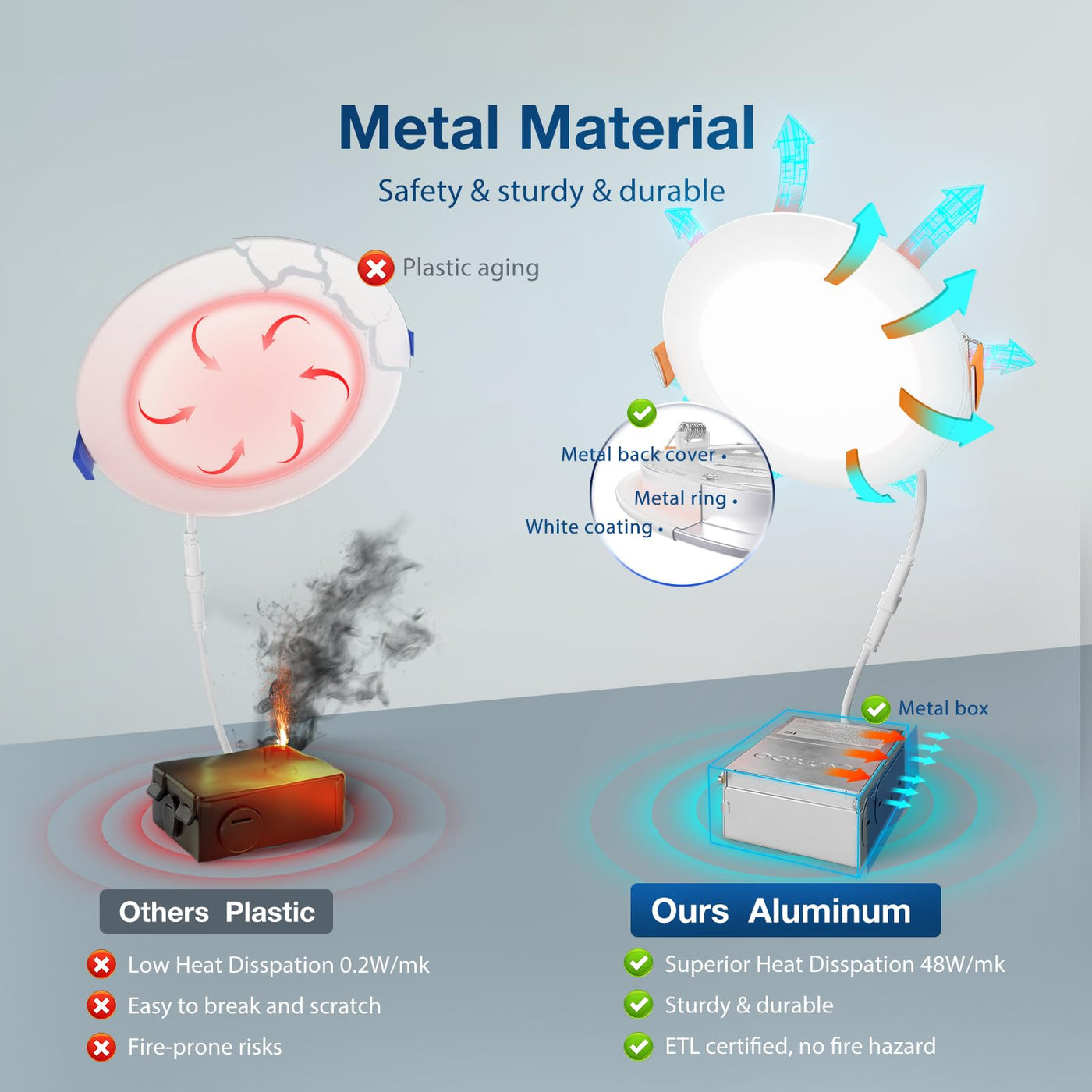 Q: Are the Amico LED recessed lights safe to use in insulated ceilings?A: Yes, the Amico LED recessed lights are IC rated, which means they are safe for contact with insulation in ceilings. This feature helps prevent fire hazards and ensures thermal protection for the junction box.
