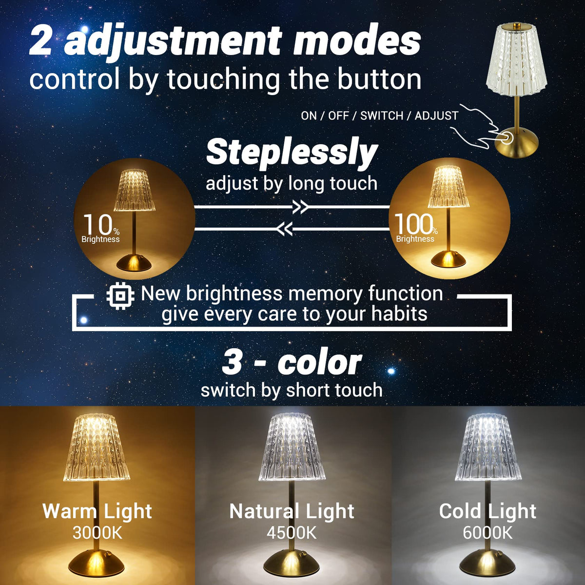 - **Stunning Design**: This charming 12" lamp shines like a golden fountain when lit, adding a touch of elegance to any decor. Crafted with a crystal lampshade made of optical acrylic, it delivers soft, steady, high-brightness light that reduces eye strain, while the polished metal surface enhances its aesthetic appeal.