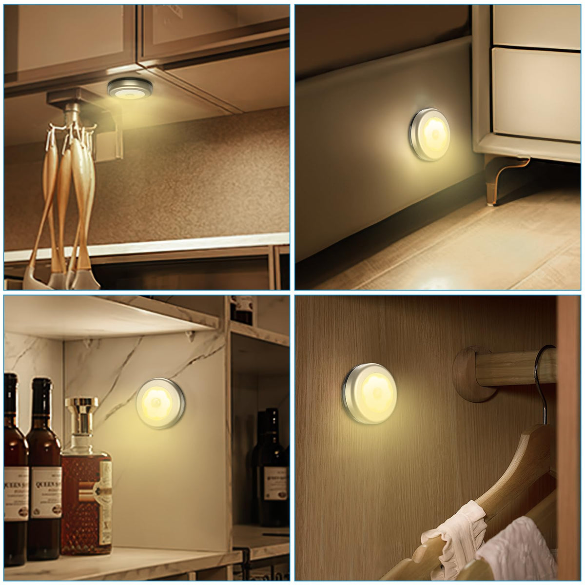 Amir Newest Motion Sensor Light, 6 Pack Cordless Battery-Powered Led Night Light, Stick-Anywhere Closet Lights Stair Lights, Safe Lights For Hallway, Bathroom, Bedroom, Kitchen (Golden - Warm White)