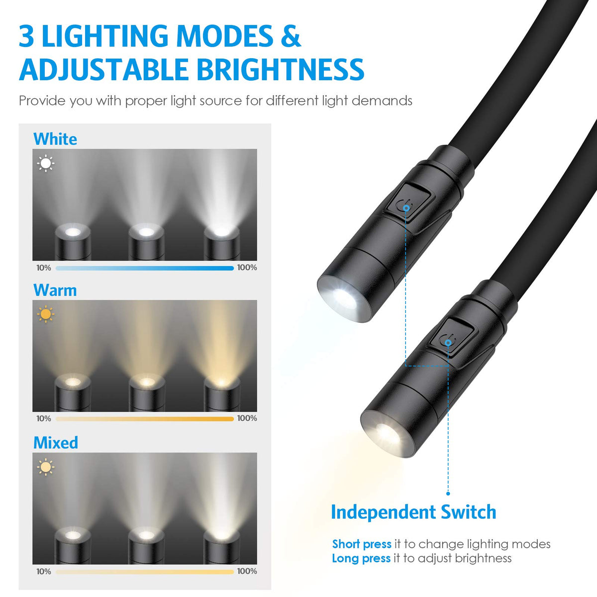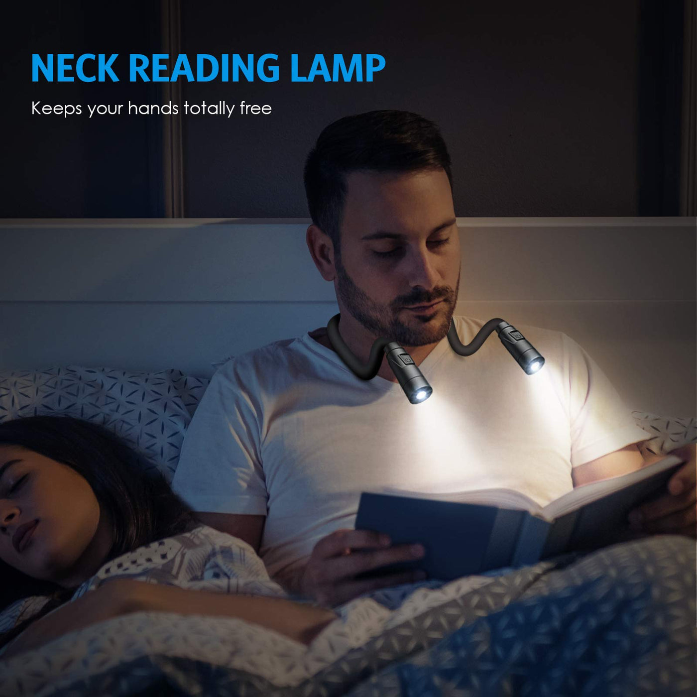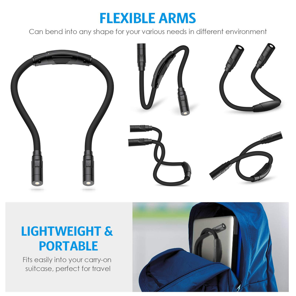 AMIR Upgraded LED Neck Reading Light, Book Light for Reading in Bed, 3 Colors, Brightness Adjustable, Bendable Arms, Rechargeabl