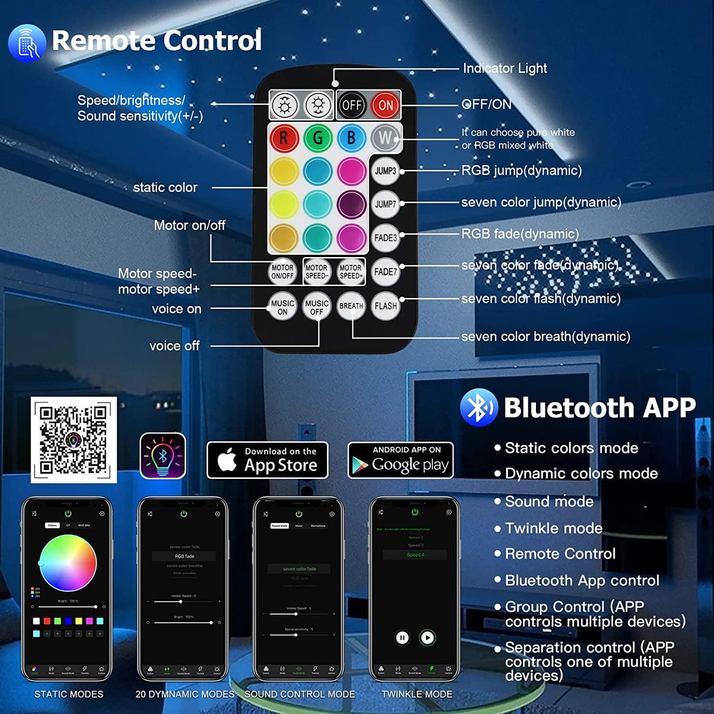 Amki Upgraded 16W Starlight Headliner Kit Twinkle+Sound Activated 550Pcs 0.03In 13.1Ft Cable Sound Activated App/Bluetooth Remote Control Fiber Optic Light For Car Roof Home Ceiling