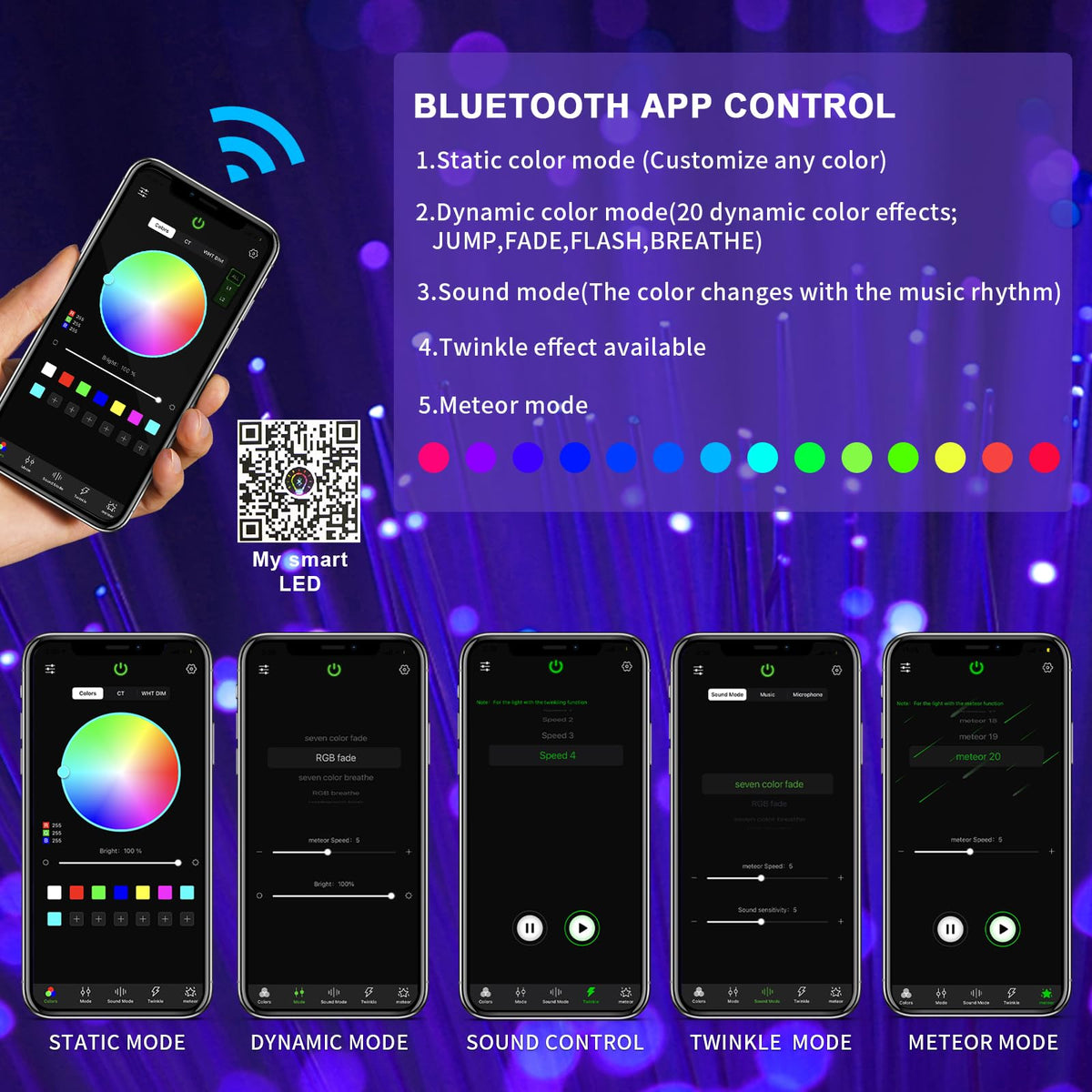 Amki Upgraded 16W Twinkle Starlight Headliner Kit Shooting Star Twinkle+Sound Activated 450Pcs 0.03In 9.8Ft Cables Fiber Optic Lighting Meteor Kit For Car Home Ceiling Roof Decor