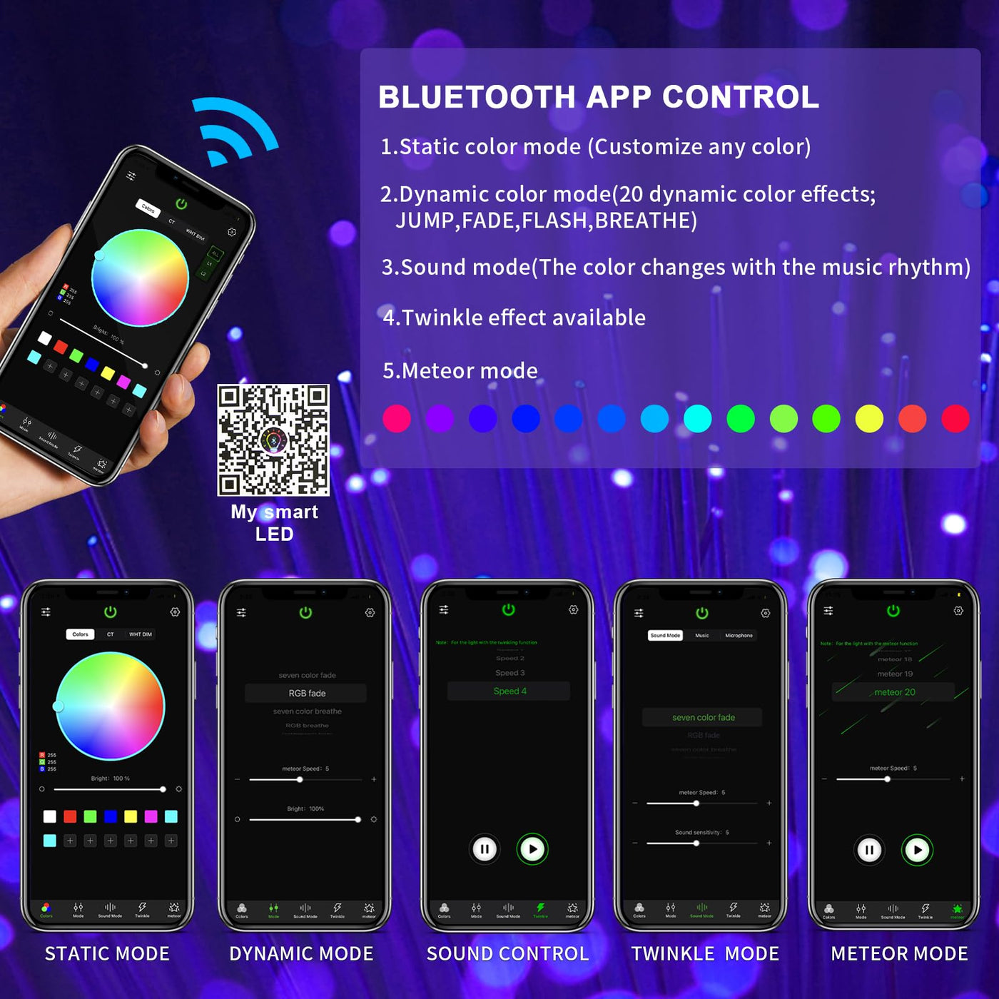 Q: Can I control the lights using my smartphone?A: Yes, you can control the AMKI Twinkle Starlight Headliner Kit using a smartphone app. The app allows you to manage various light settings, including color selection, brightness adjustments, and dynamic modes, all from your mobile device.