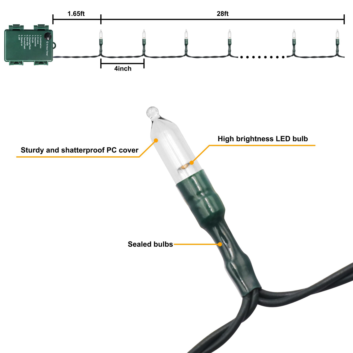 These string lights are powered by three AA batteries (not included), allowing you to hang them anywhere without the need for a plug. Their energy-saving design ensures low power consumption, making them an economical choice for festive decorations. With a total of 80 LED lights in a warm white color, they provide a soft glow that enhances the ambiance of your home or outdoor area.