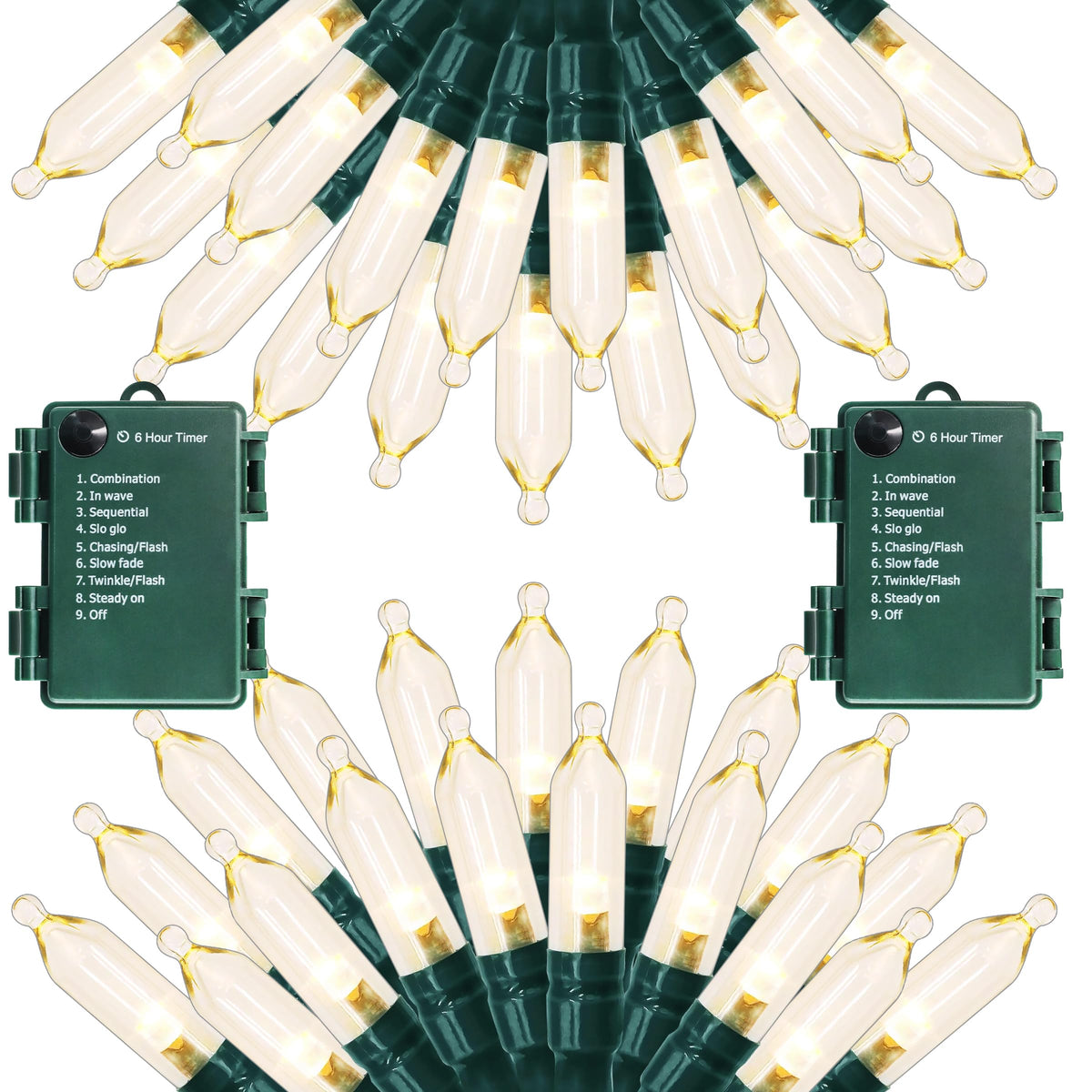 Q: What color are the lights, and what ambiance do they create?A: The lights emit a warm white glow, creating a cozy and inviting atmosphere, ideal for various occasions such as holidays, weddings, and parties.