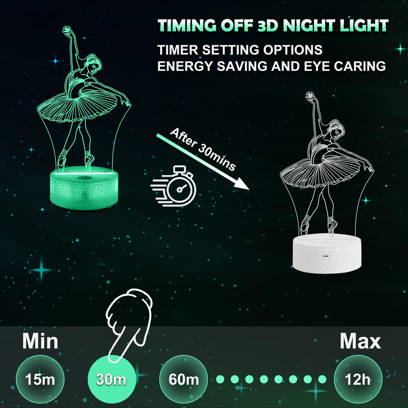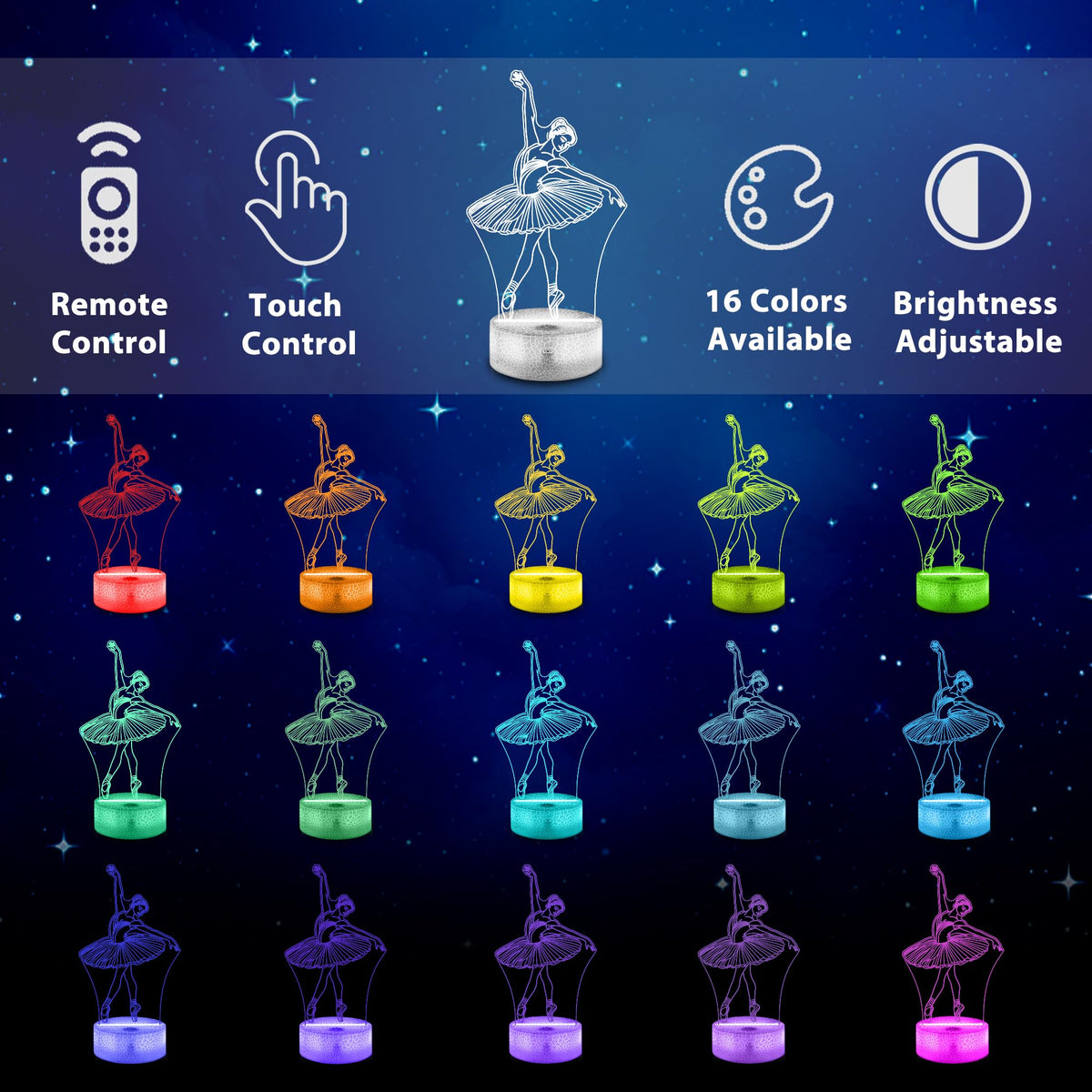 Ammonite Ballet Night Light, Ballerina 3D lamp 16 Color Changing with Remote Control and Timer, Women Ballet Decor Light Birthda