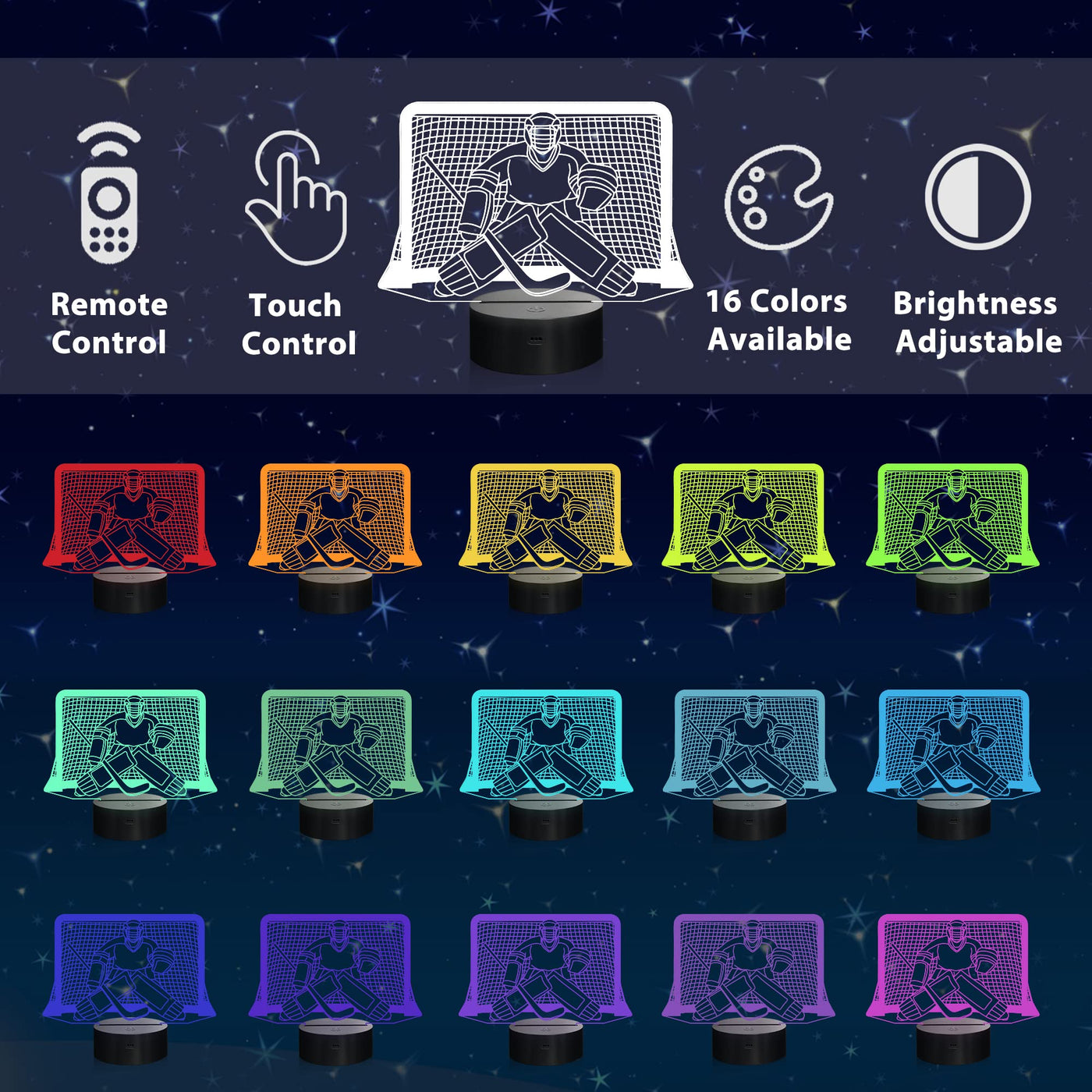 Ammonite Ice Hockey Night Light, Hockey Goalie 3D lamp 16 Color Changing with Remote Control and Timer, Mens Ice Hockey Decor Li
