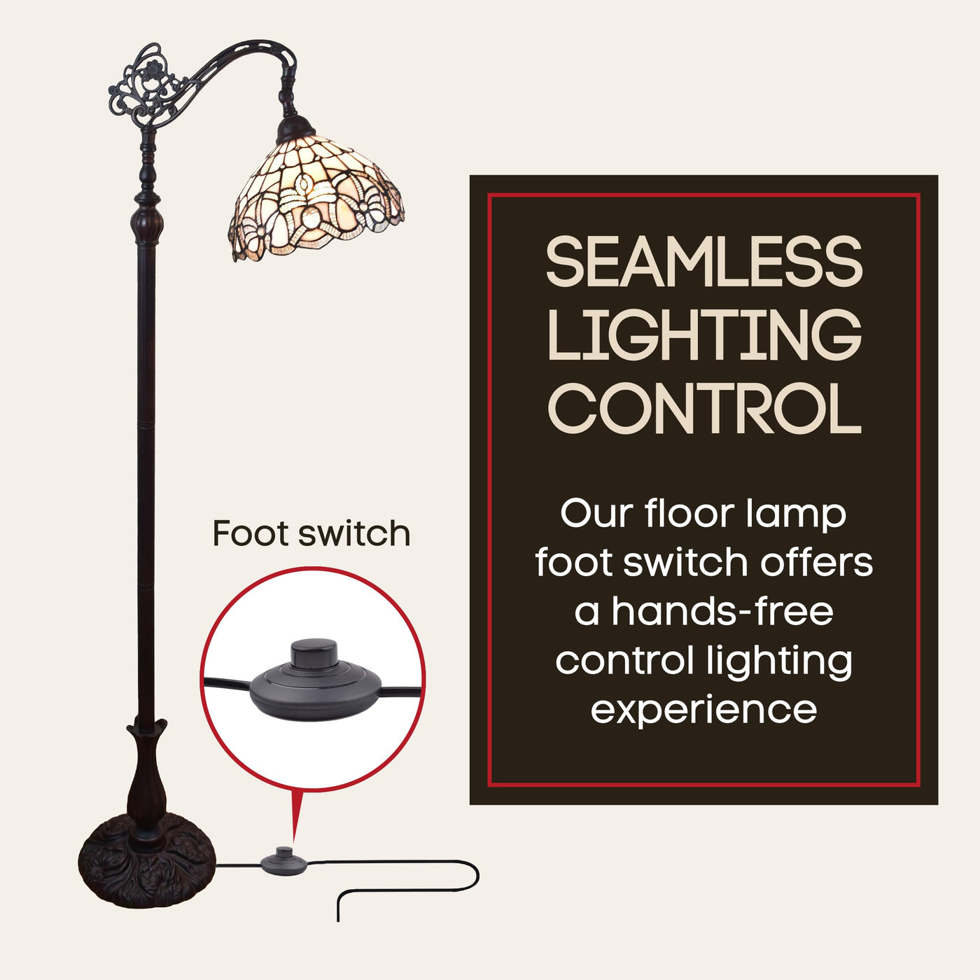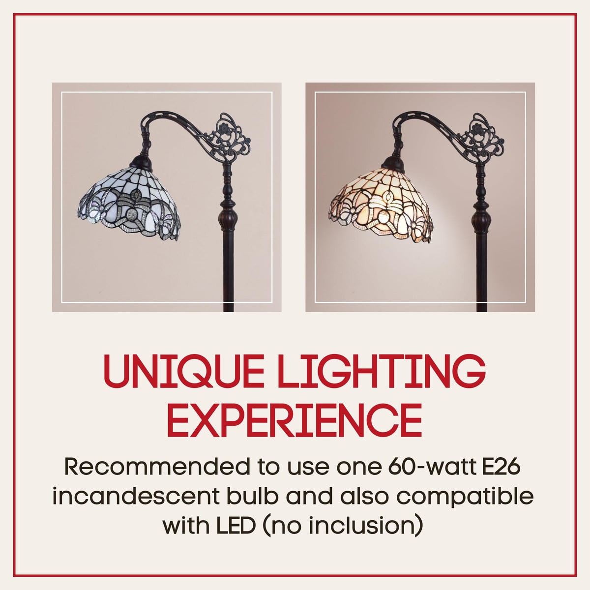 Amora Tiffany Floor Lamp - Arched, Stained Glass 62 - Traditional White Mahogany With Foot Switch Operation And Adjustable La