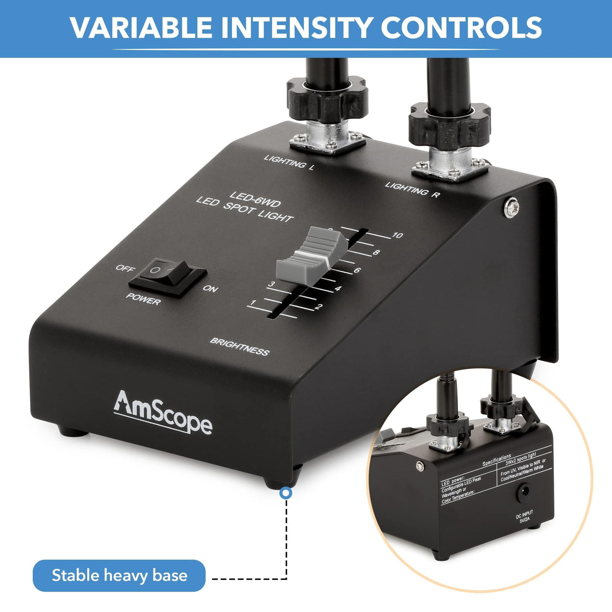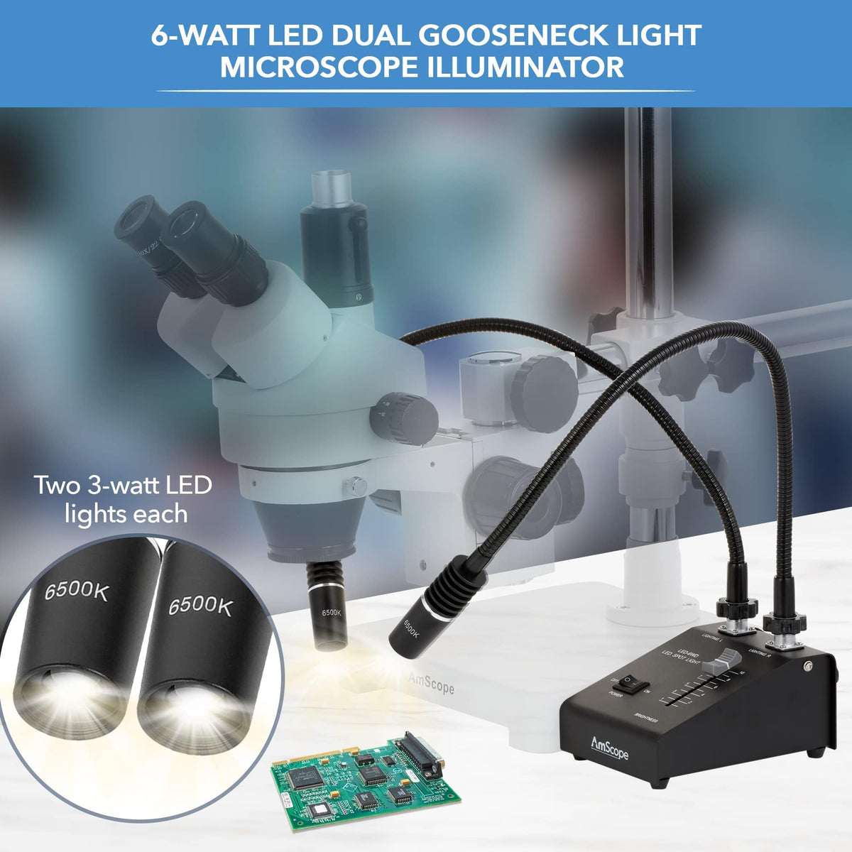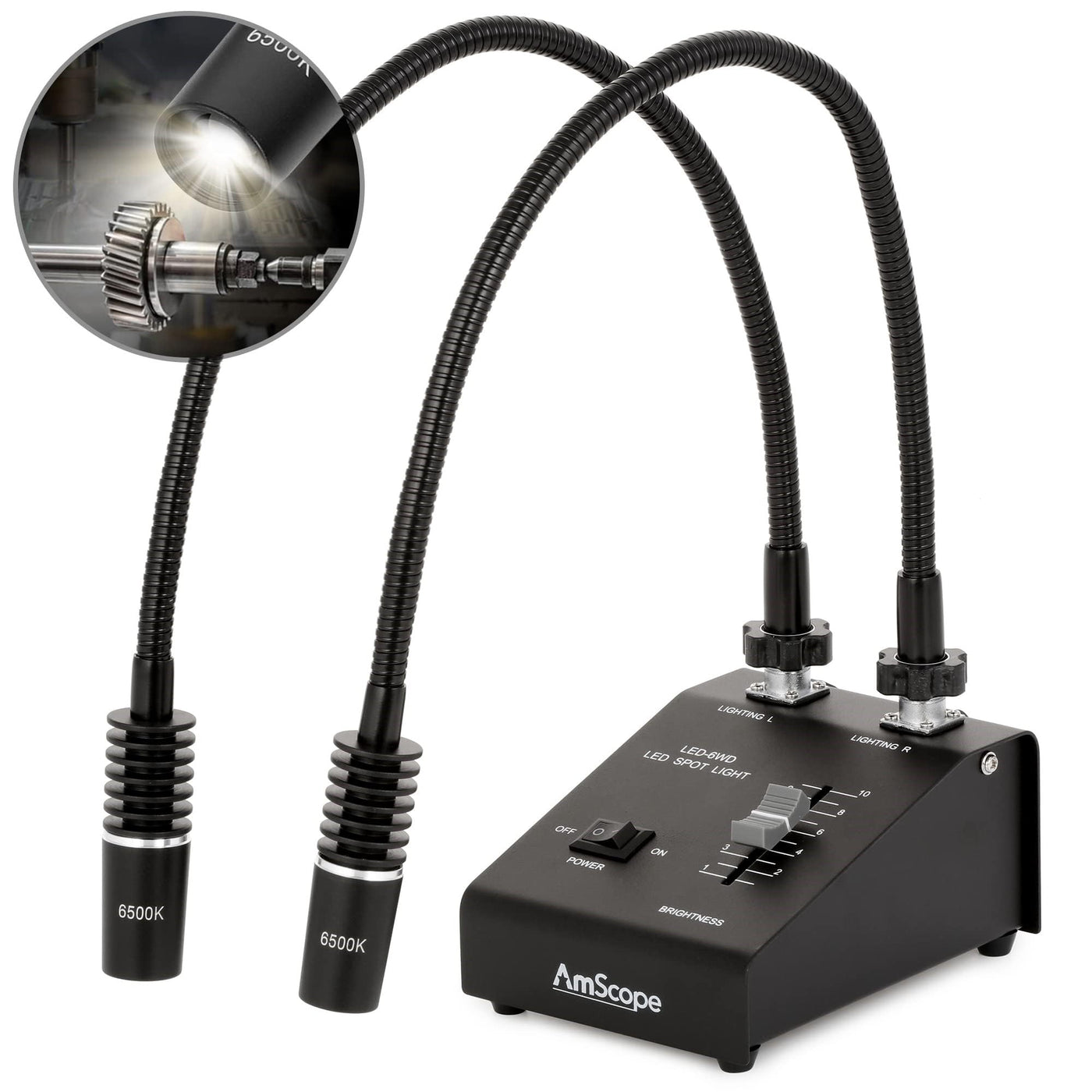 Amscope 6W Led Dual Gooseneck Illuminator Light, Black, 1 Count, Metal Construction