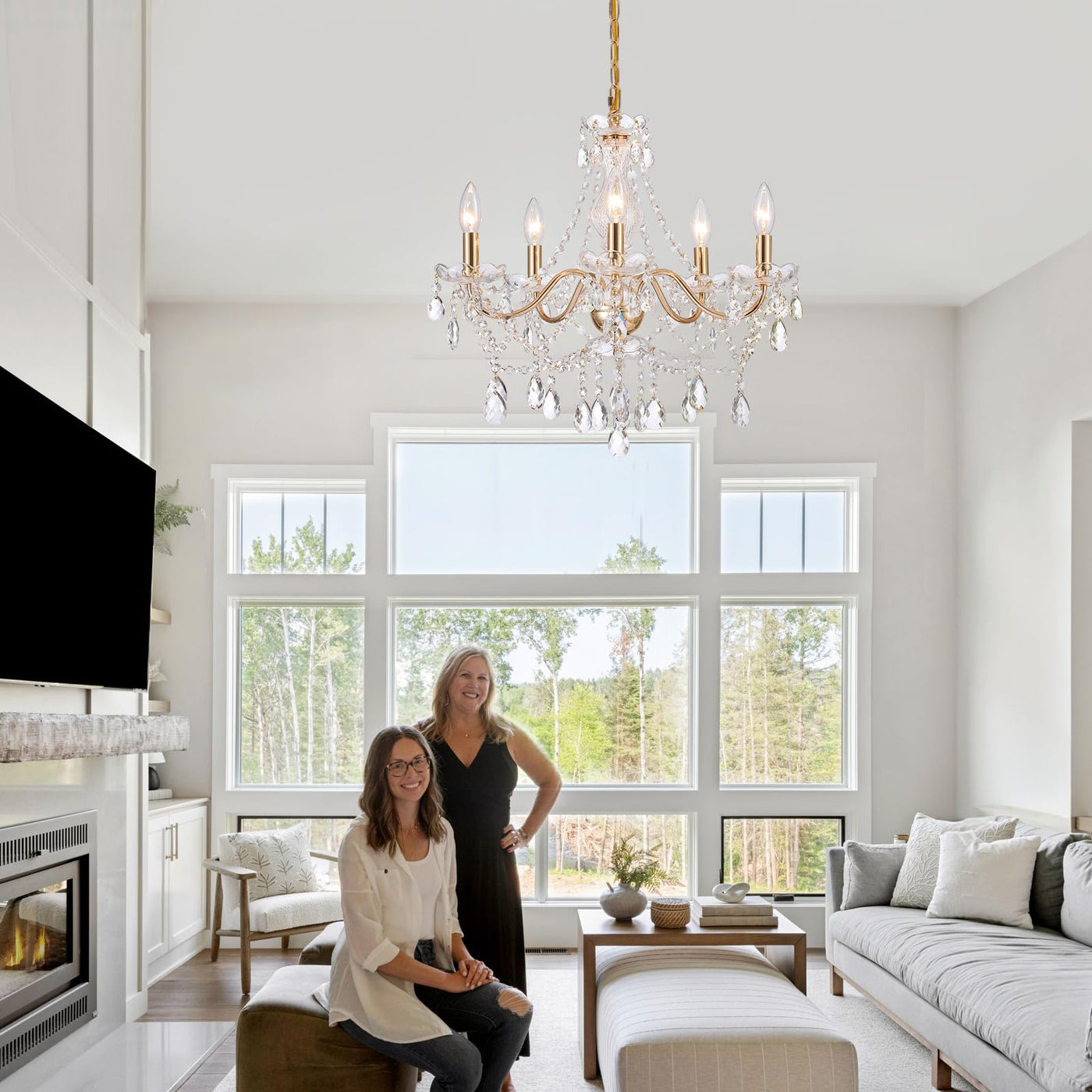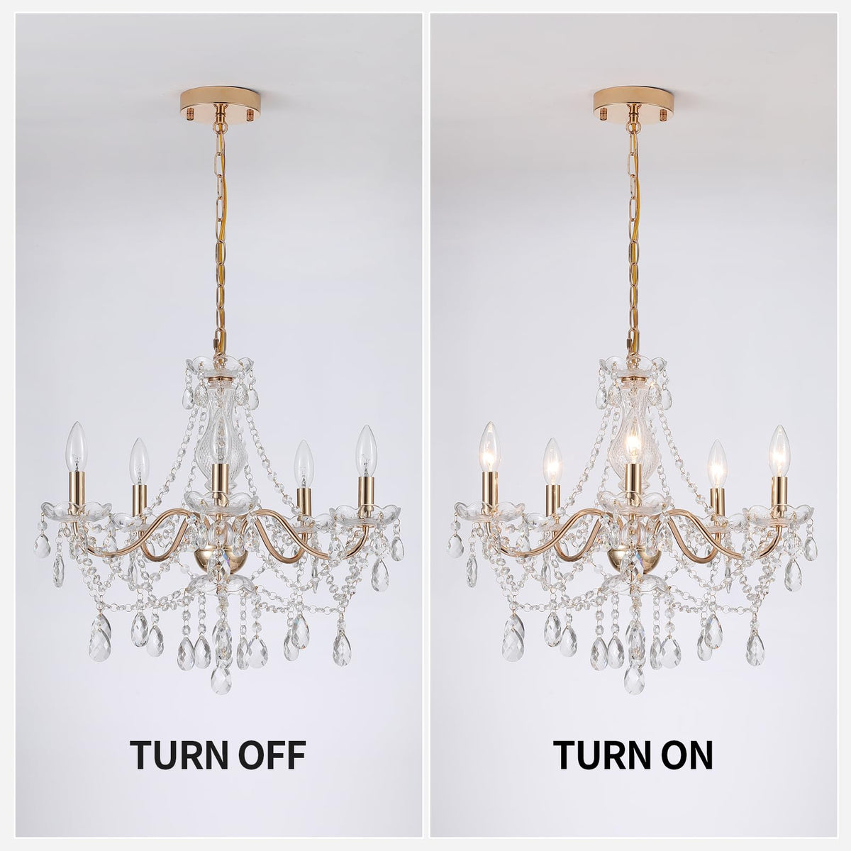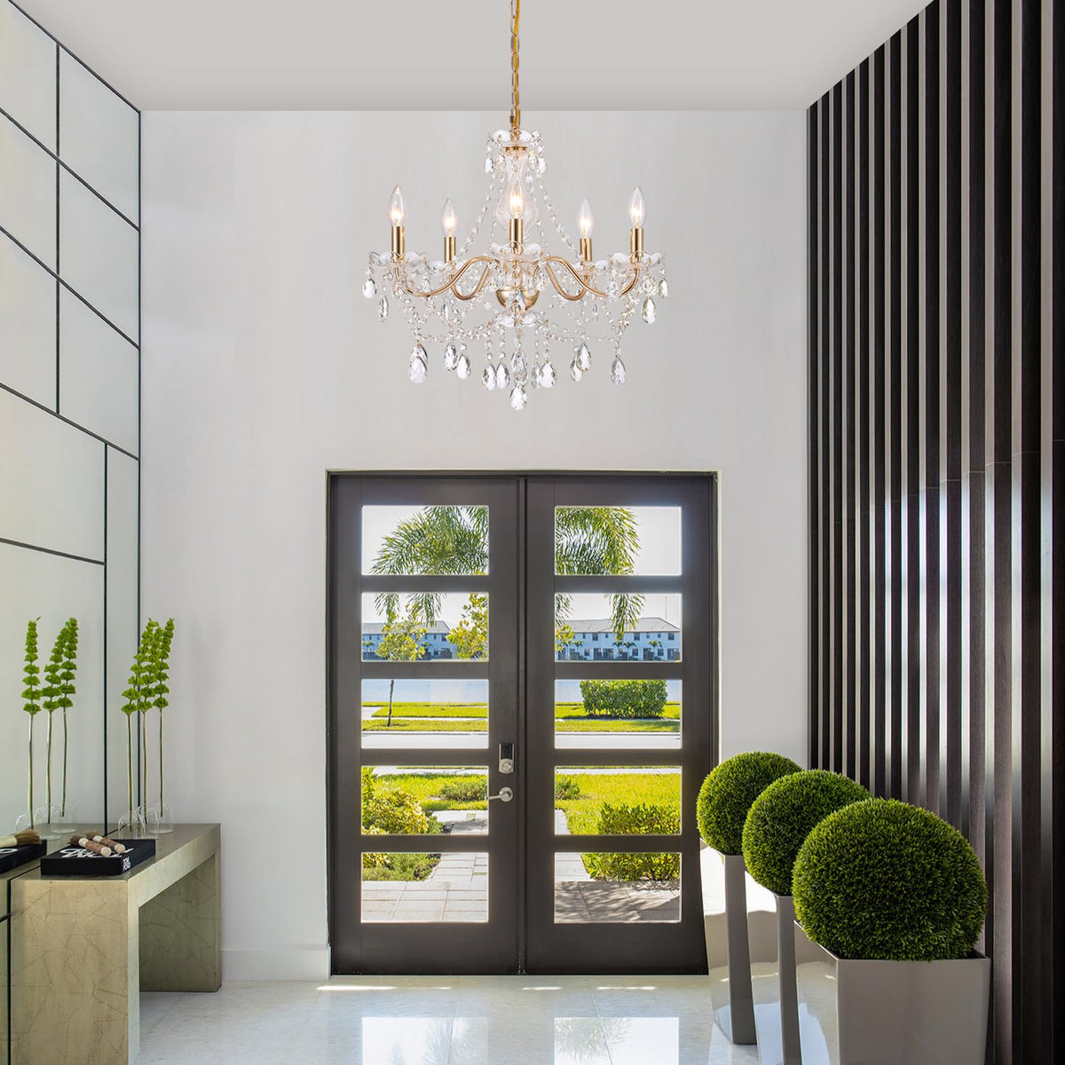 Amzasa Crystal Gold Chandelier Glass Crystal Hanging Pendant Lighting 5 Light French Country Gold Crystals Chandelier For Ceiling Medallions Wedding Dining Kitchen Foyer Dia 20 Golden