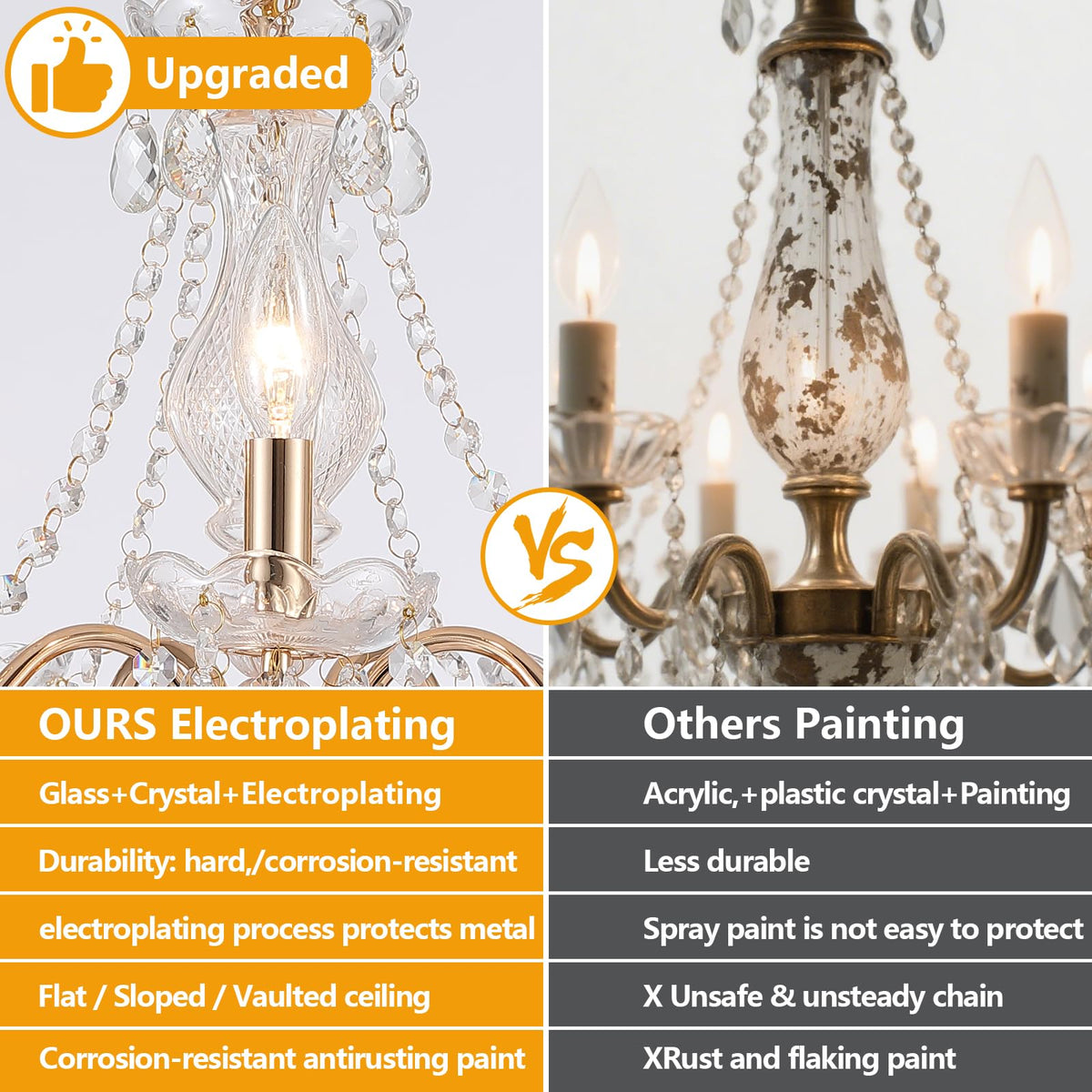 Unique Crystal Glass Design: Never Fall Off Never Fade. This Unique Style Of Crystal Chandelier Tube With Crystal Lamp As A Feature Gold Candlesticks Are Adorned With Numerous High-Transparency Crystal Pendants Adding To Chandelier Overall Charm And Appeal.