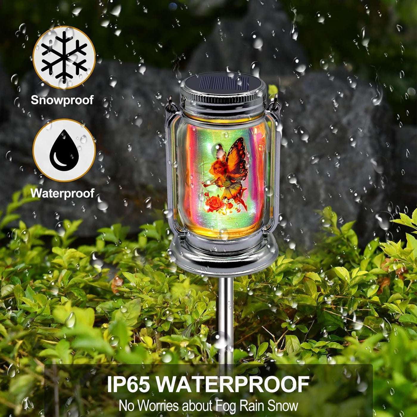 Every Angmln'S Lantern Fairy Nightlight Is Coming With Metal Handle And Extral Stakes, You Can Place On A Flat Surface, Hang It On The Tree, Insert It Into The Ground In Your Patio, Lawn, Yard, Porch, Walkway, Driveway, Bench, Fence, Pergola, Rooftop, Swing, Umbrella, Tent. Decorative Fairy Lights Can Decorate Your Environment For Your Outdoor Activities, Also Can Be Difted To A Loved One, Or To Make Your Little Angle Feel More Comfortable At Night With The Tiny Fairy Friend Inside The Jar. Our Fairy Decor Lantern Are Made With Sturdy Plastic, Stainless Steel And Glass, It Will Not Rust When Used Outddor For Many Years. It Is Designed To Withstand All Bad Weathers. Specification: Solar Panel:2V Rechargeable Battery:Aaa,1.2 V Light Color:Warm White*2 Lighting Style:Steady Working Time: 6-8 Hours Solar Panel Size:3.5*3.5*3.5Cm Powered:Solar Charging Aaa Battery Material: Abs Plastic, Glass Waterproof Level:Ip44 Package Includes: 2 X Mason Jar Lantern 2 X Colorful Fairy Decor 2 X Ground Stake 1 X User Manual