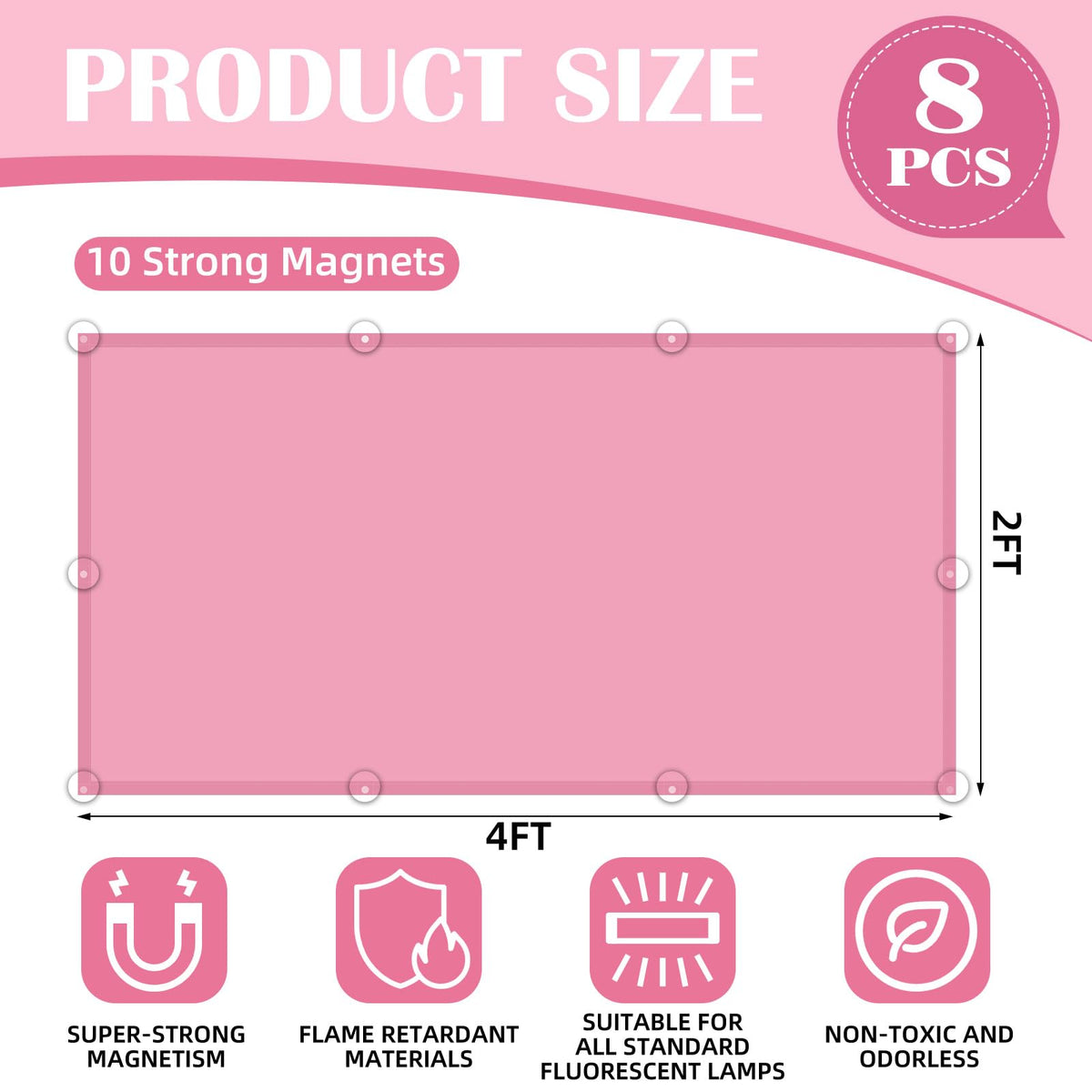 Angsylth 8 Pcs Fluorescent Light Covers - 4 X 2 Feet Pink Light Filters For Classroom, Office, Hospitals, Home