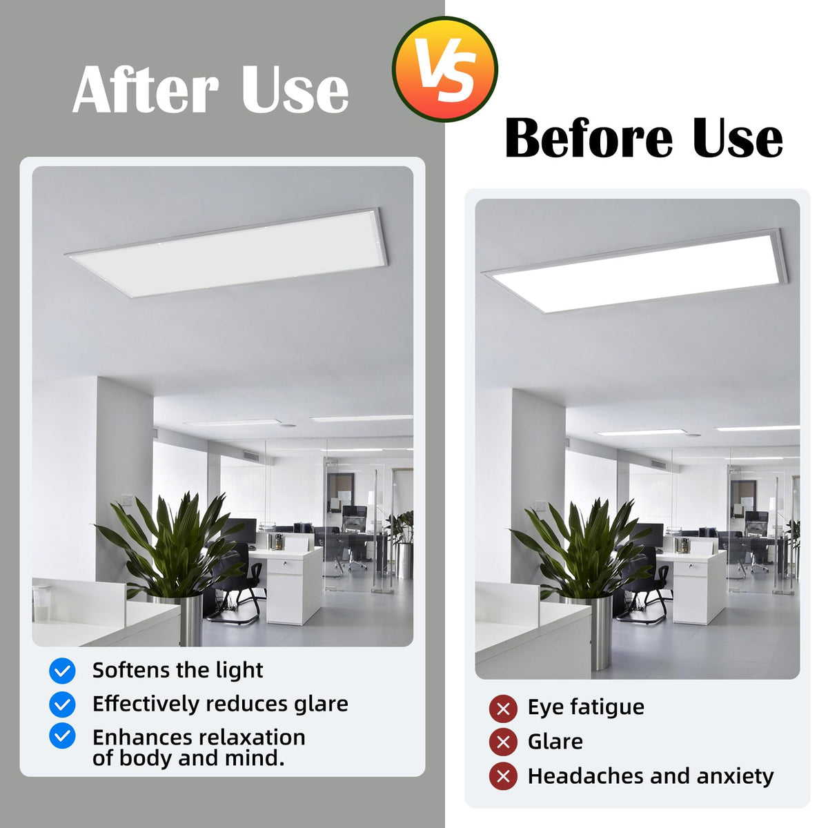 Eye Comfort: Designed to alleviate headaches and ease eye strain caused by harsh lighting.