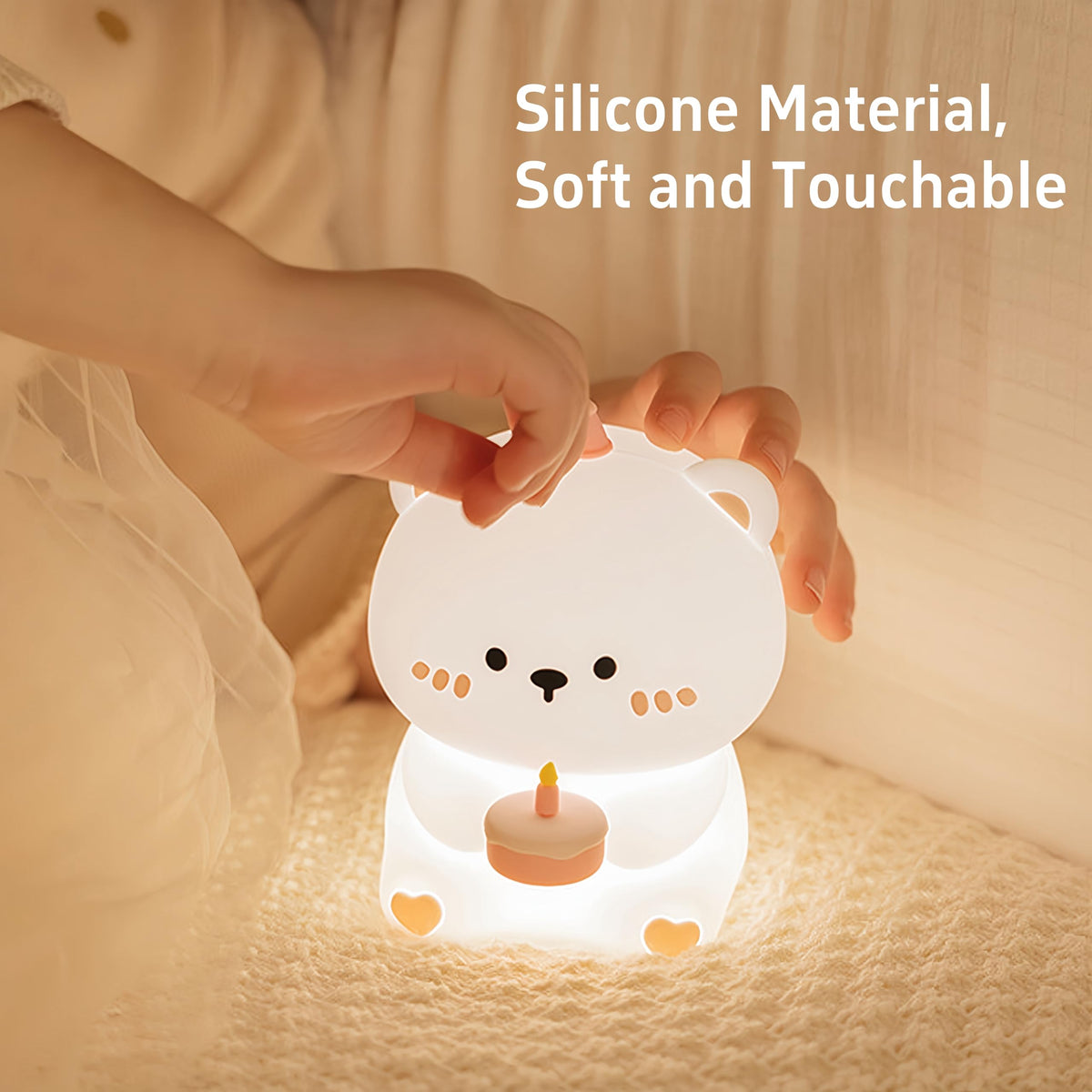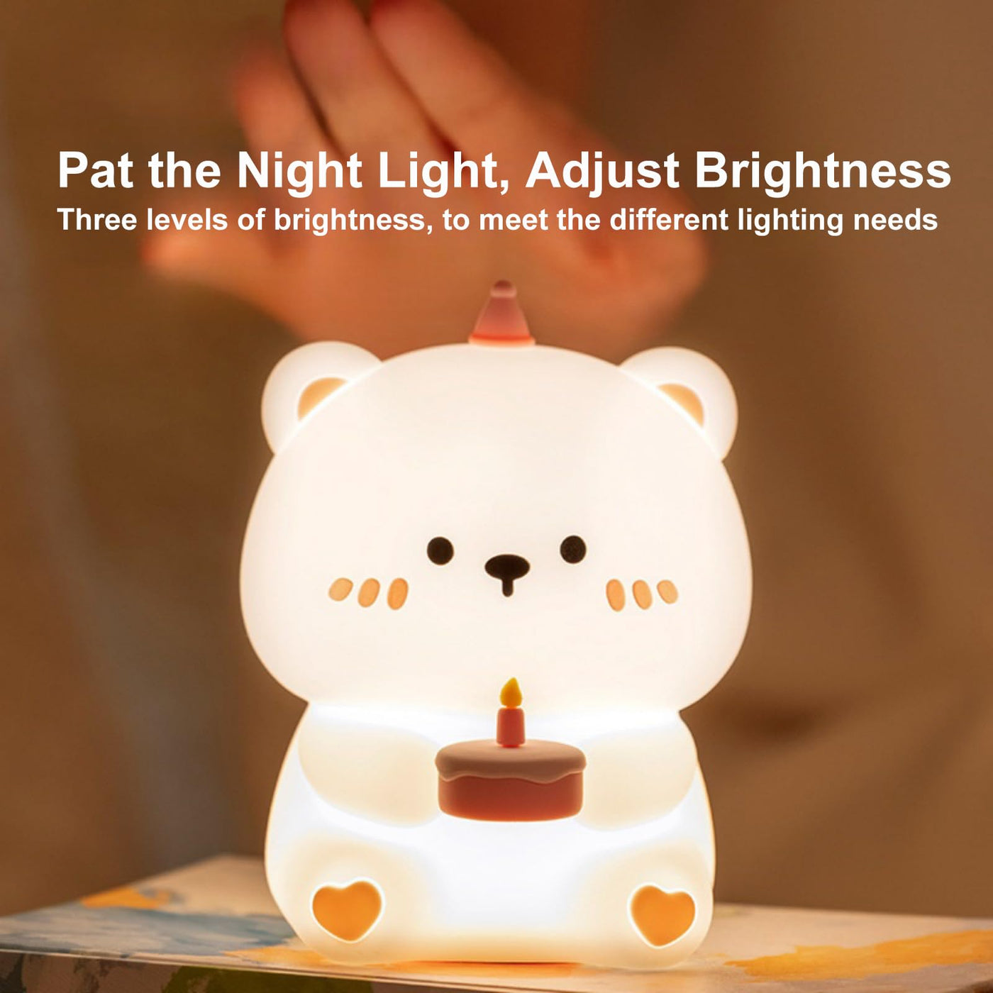 Bear Night Light, Bear Lamp, Cake Night Light for Nursery, Cute Night Light Dimmable and Rechargeable