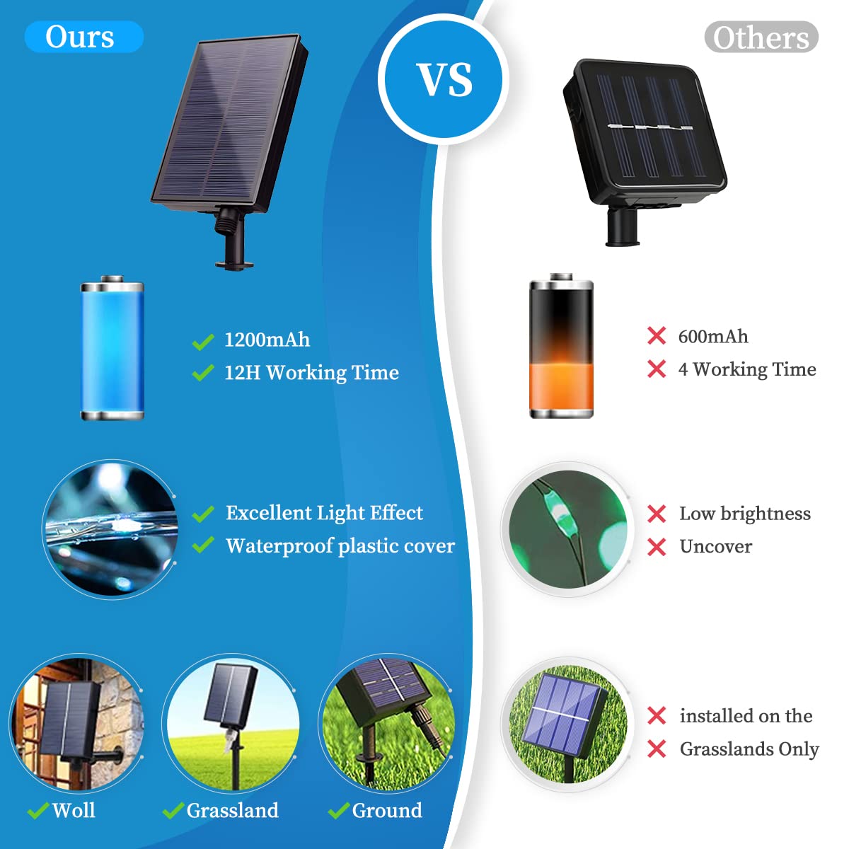 Energy Efficient: Equipped with a high-quality solar panel and a 1200mAh battery, these lights absorb sunlight during the day and provide 8-12 hours of illumination at night, making them eco-friendly and cost-effective.