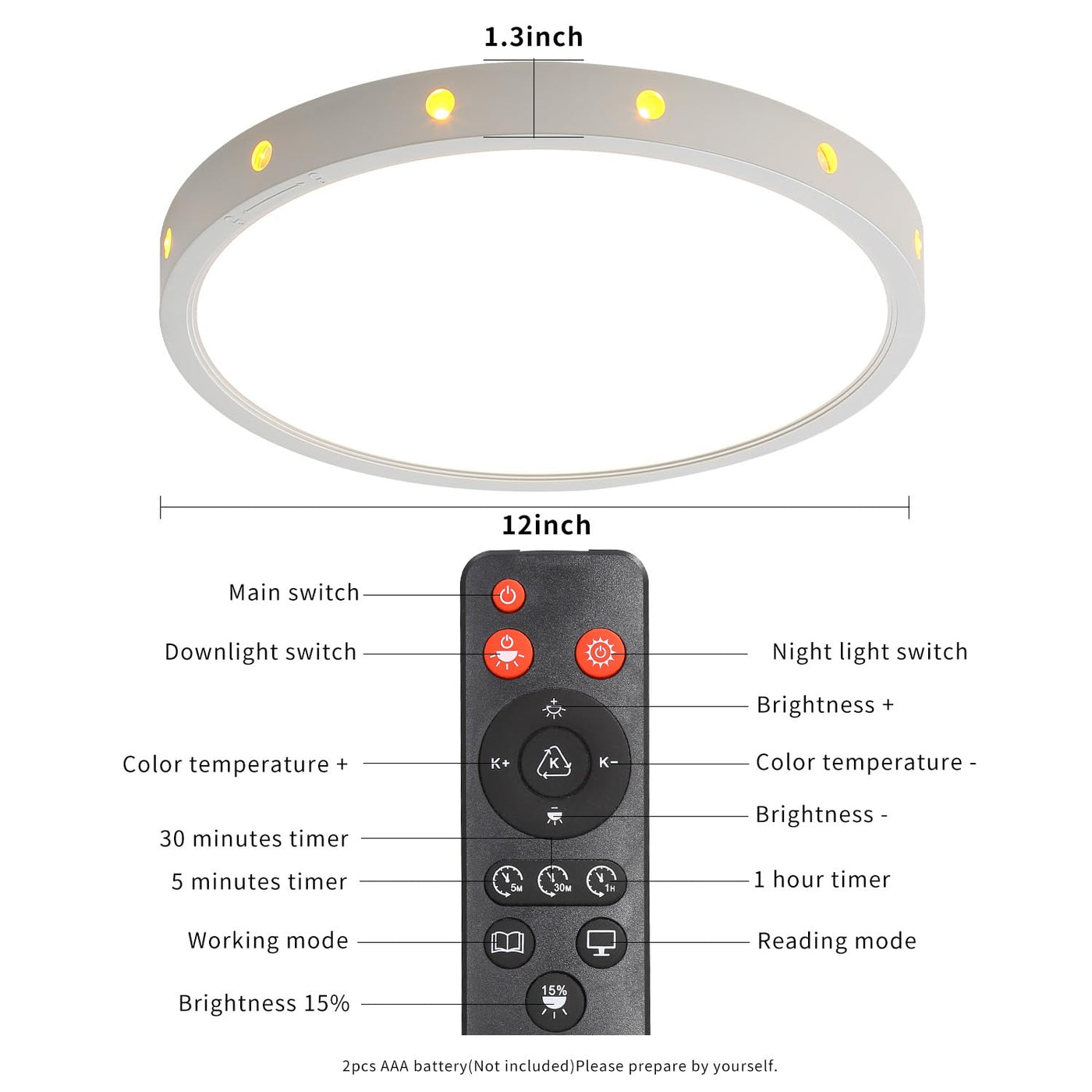 Anmaice 12in Flush Mount LED Ceiling Light, Dimmable with Remote Control, Round, White, Model CPX008A-YK