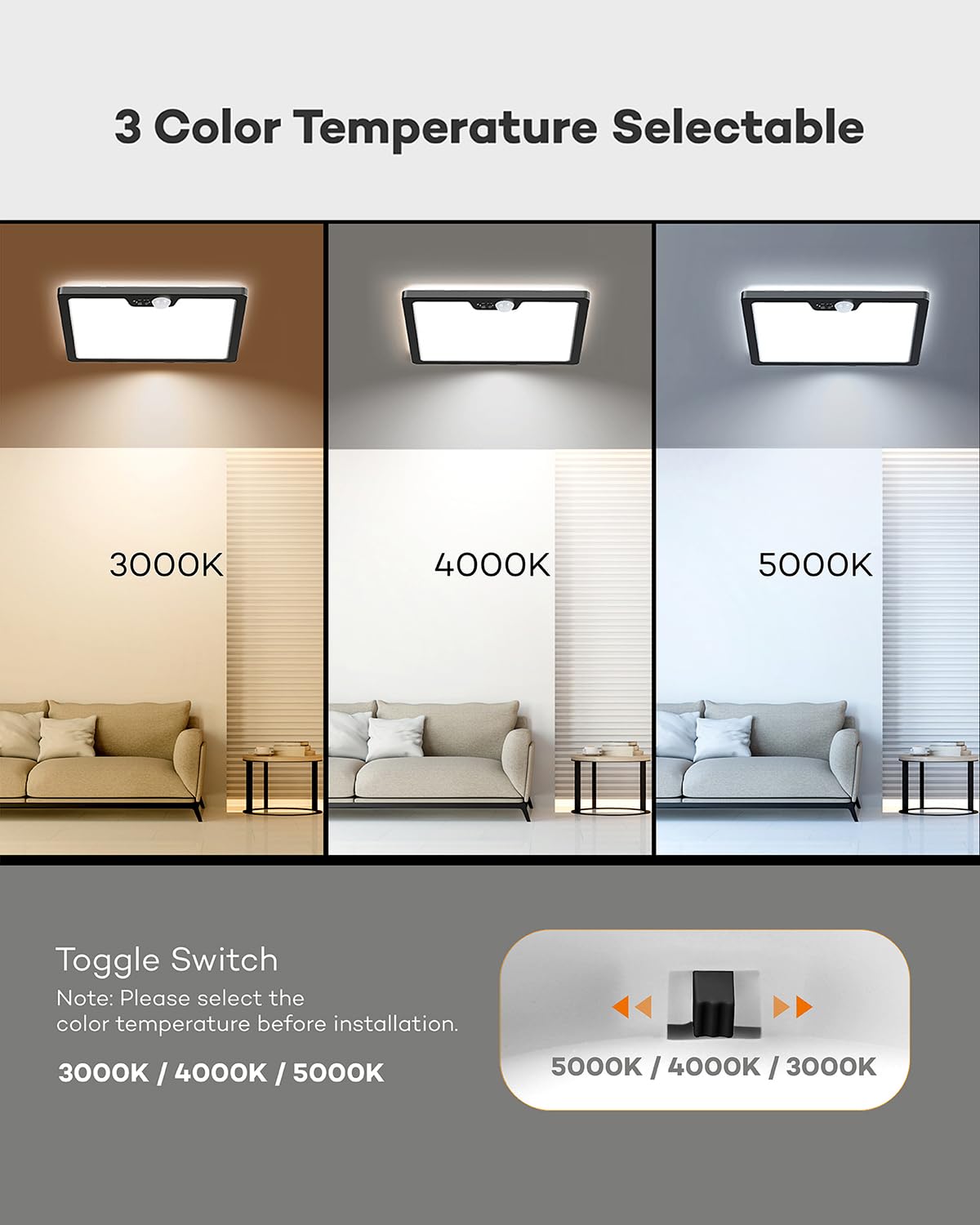 Adjustable Color Temperatures: Choose from three light colors (3000K Warm White, 4000K Natural White, 5000K Cool White) for customized ambiance.