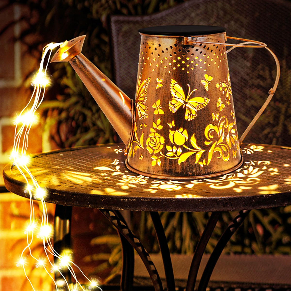 Q: What makes the butterfly design of these lanterns unique?A: The butterfly-shaped design of the Anordsem Solar Watering Can Lights not only adds an aesthetic appeal to your garden but also creates beautiful light and shadow effects. This artistic feature enhances the ambiance of outdoor spaces, making it a perfect decorative element.