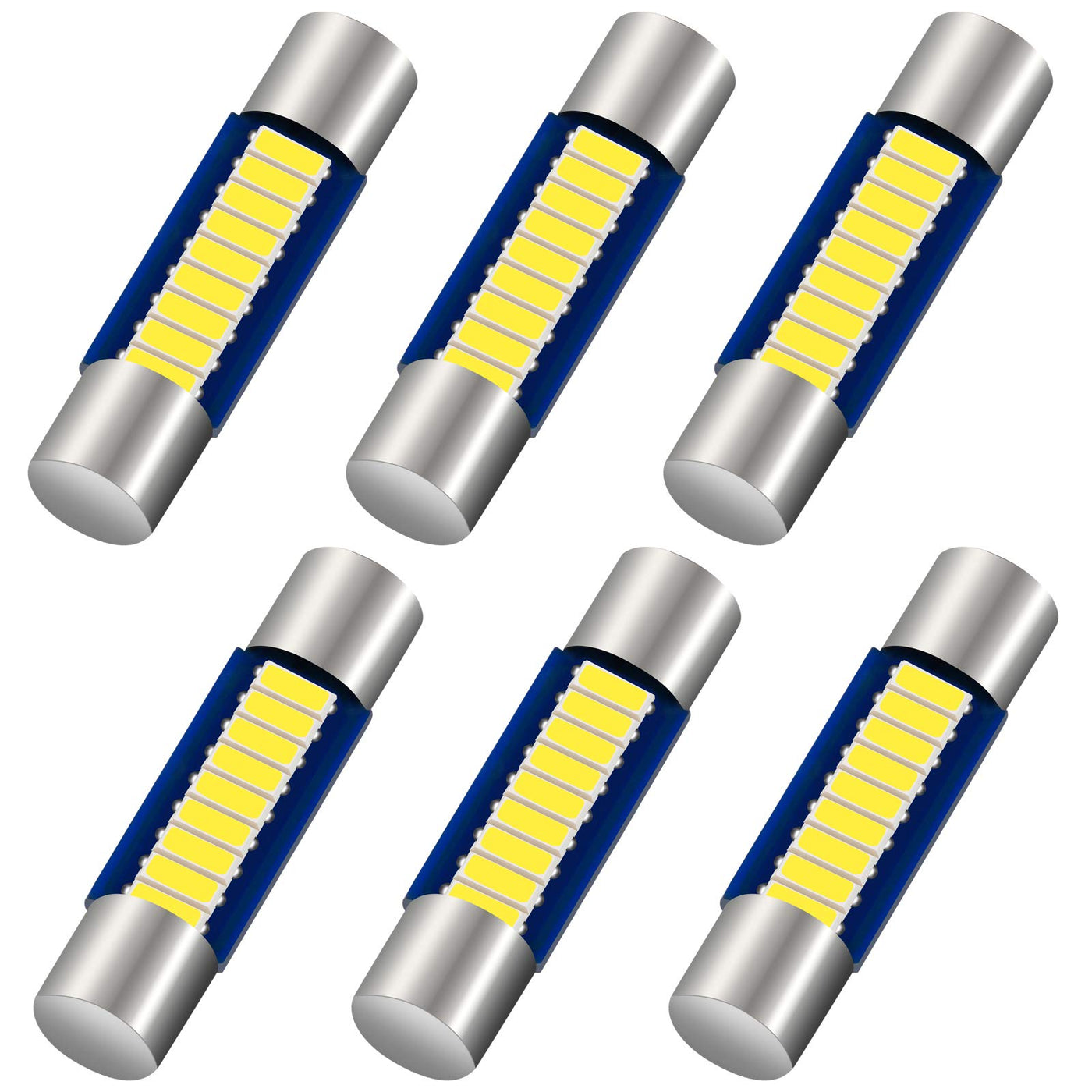 Anourney 6Pcs 28Mm 29Mm 6614F Festoon Led Car Bulb, Extremely Bright 9-Smd 4014 Chips 6641 6612F Led Bulb, Fit For Vanity Mirror Lights And Sun Visor Lights, 6000K White