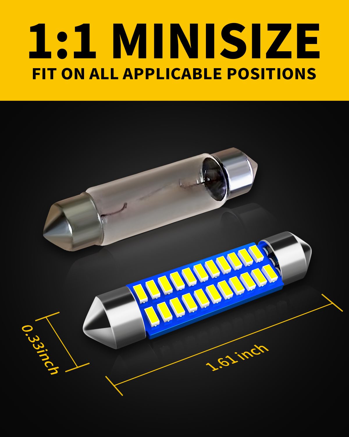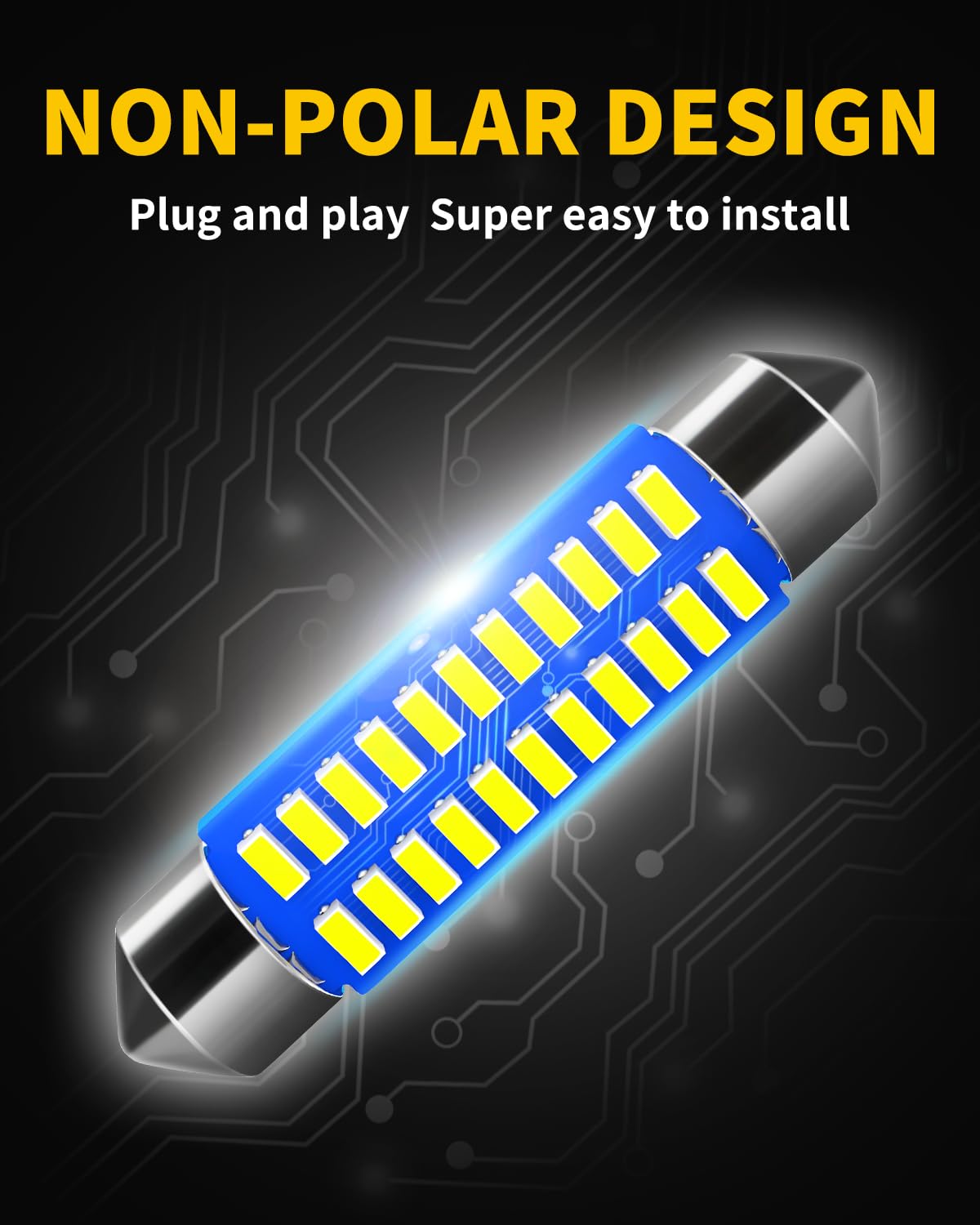 Simple Install: Featuring a direct replacement, all-in-one design, these bulbs require no additional wiring. Just plug and play for immediate bright light in your interior lights, vanity mirrors, sun visors, map lights, dome lights, and reading lights.