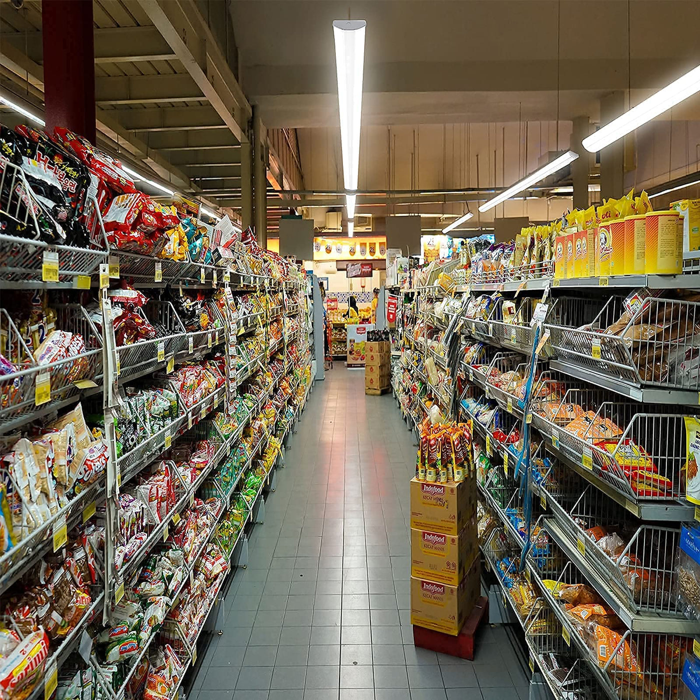 Features of 8 foot LED Light Fixtures Durable steel construction with knock outs on ends and assemble the lights in line. Ultra thin patent design. Frosted light cover provides soft and comfortable light, no dazzle, uniform illumination. Outstanding thermal solution suit for usage in commercial application and provide wide angle brightness control. Energy-efficient LED technology lowers energy usage and cost. Emits over 12600 Lumens for 8 foot led wrap lights.