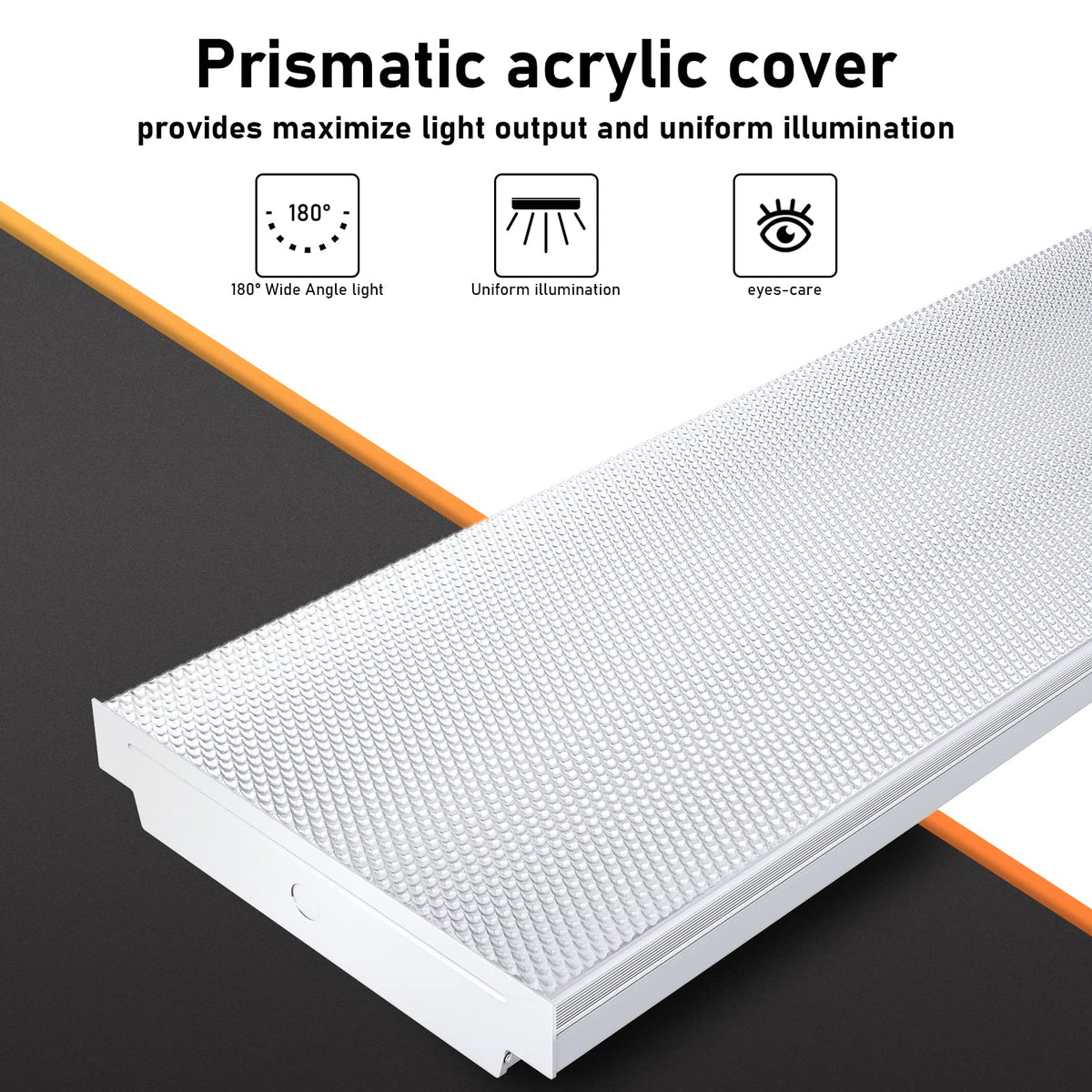 Features of 4ft LED Wrap Light Durable steel construction with knock outs on ends and assemble the lights in line. Patent prismatic acrylic cover provide maximize light output and uniform illumination. Easy and quick installation, Contractor-friendly design. Very convenient and Hassle free installation. Can be surface mounted to walls and ceilings for application variability. Outstanding thermal solution suit for usage in commercial application and provide wide angle brightness control. Energy-efficient LED technology lowers energy usage and cost. Emits over 8000 Lumens for 4ft led light fixture. Instant-On. 50,000hrs lifespan. Environment protection without UV or IR radiation.
