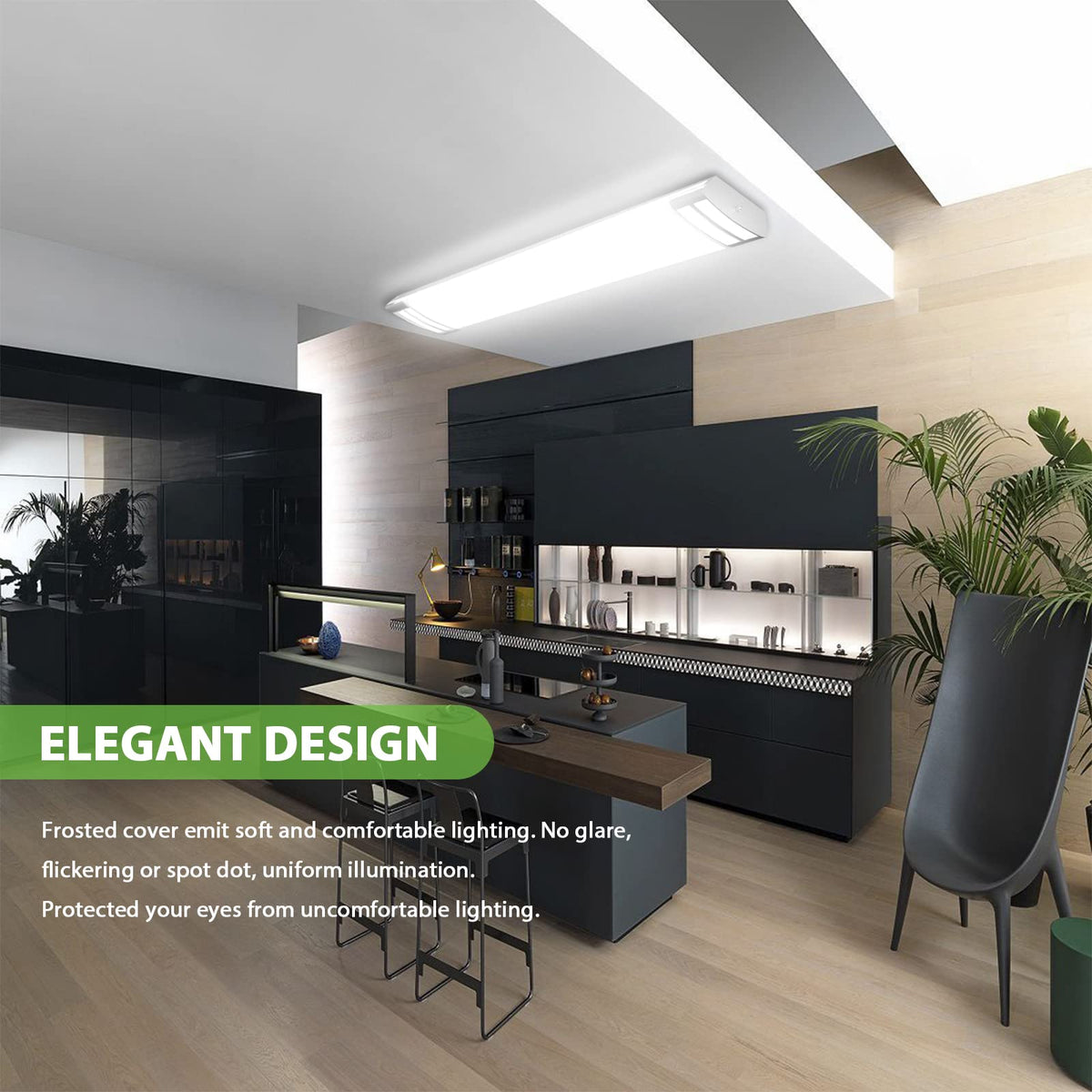Elegant Design: Features decorative end caps and a frosted cover that provide comfortable lighting without glare.
