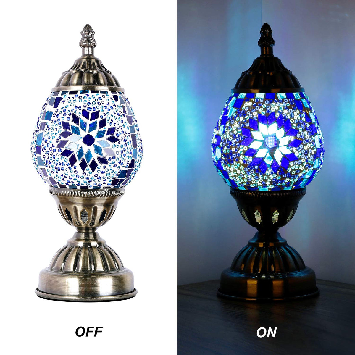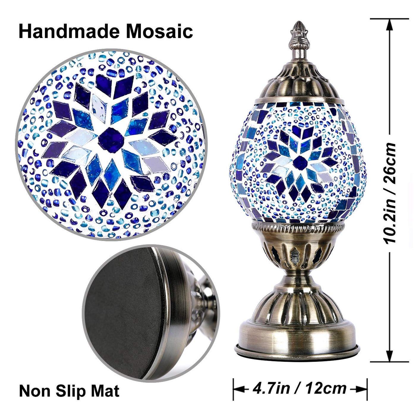 Anton Turkish Table Lamp Handmade Mosaic Glass Egg Shaped Moroccan Lantern Decorative Desk Night Light For Bedroom Living Room With E12 Led Bulb (Blue)