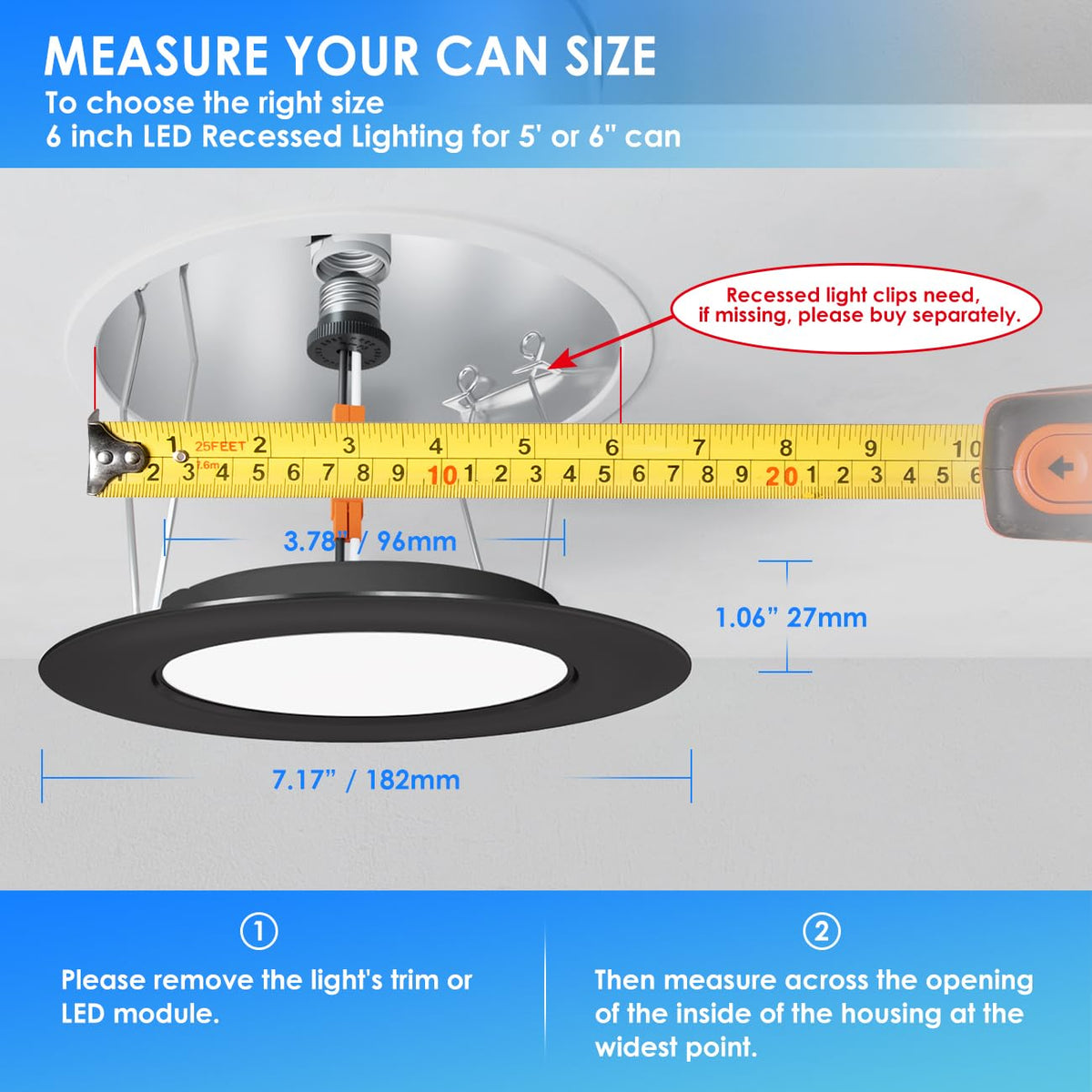 Anwio Recessed Lighting 6 Inch Black 5Cct 9W 1000Lm Flat Retrofit Led Recessed Lights Can Needs 2700/3000/4000/5000/6000K Selectable Can Lights Cri 80+ Dimmable E26 Base Ic Rated & Etl 8 Pack