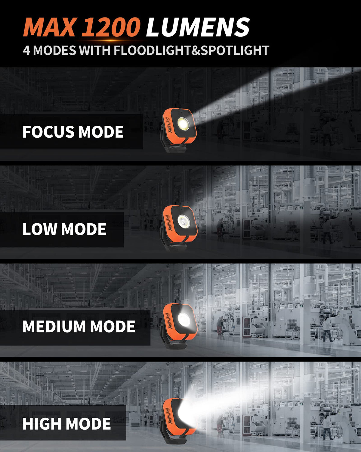 Anylight Led Work Light With 4 Modes,1200Lm Portable Cob Magnetic Light,3350Mah Recharge Spotlight And Floodlight,150? Rotate Ip