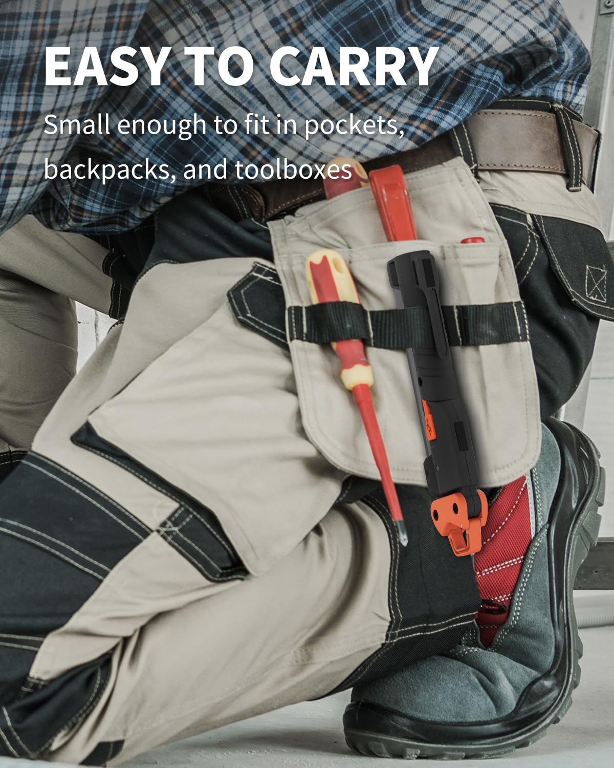 Q: Is the work light easy to attach to metal surfaces?A: Absolutely! The dual magnetic design allows the light to attach securely to any metal surface, providing hands-free convenience during repairs or outdoor activities.