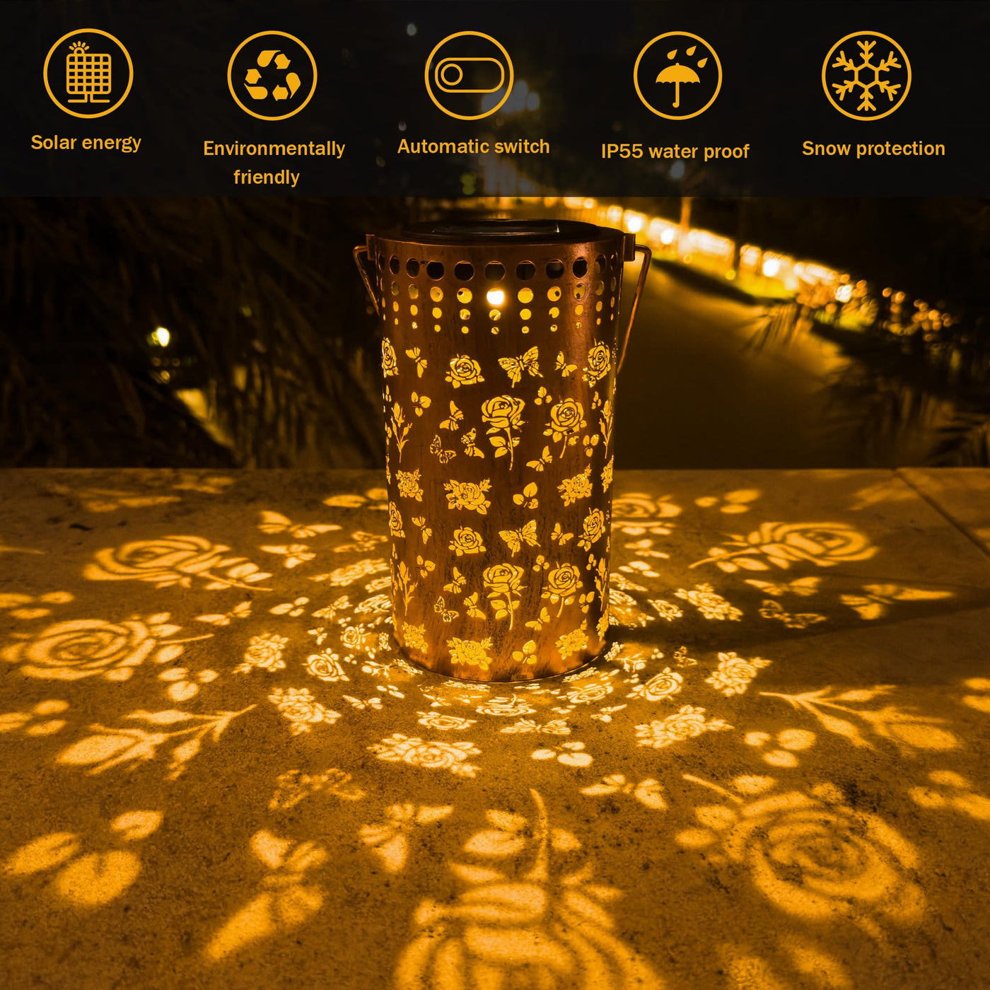 Q: What materials are used in the construction of these lanterns?A: The ANYTALK Butterfly Rose Solar Lanterns are made from strong metal and high-strength ABS material, which are treated for anti-rust properties, ensuring durability and longevity in outdoor conditions.