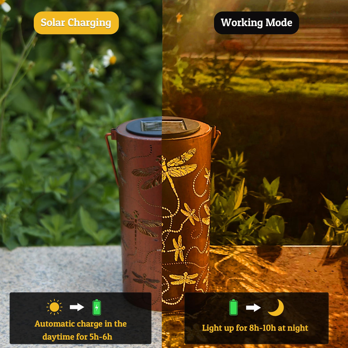 - **Exquisite Patterns**: Crafted with vintage cutouts, these hanging solar lights cast enchanting patterns on your walls or lawn, creating a warm and inviting atmosphere that helps you unwind after a long day.