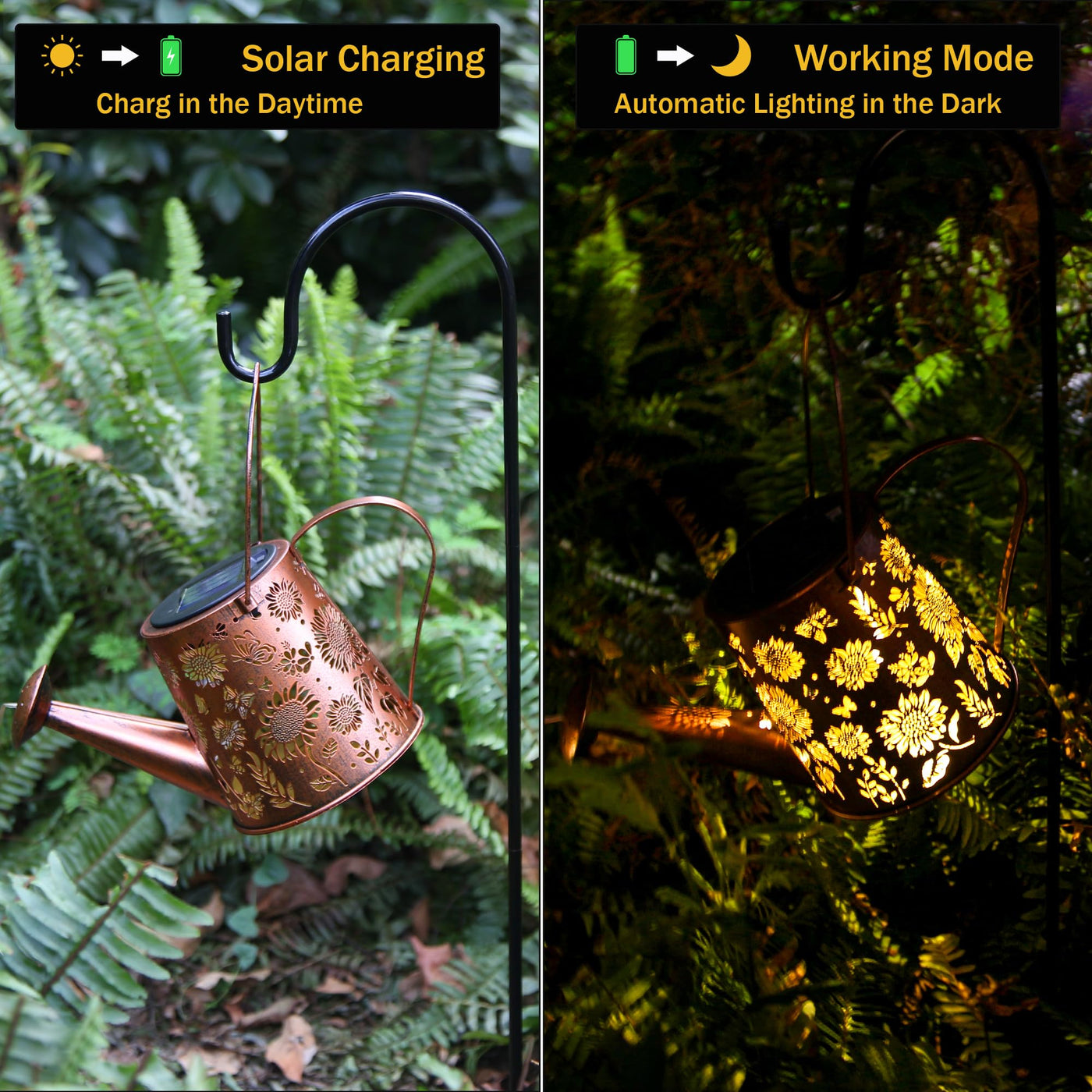 Anytalk Solar Watering Can With Lights, Hanging Solar Waterfall Lights Outdoor Garden Decorations, Waterproof Solar Garden Light