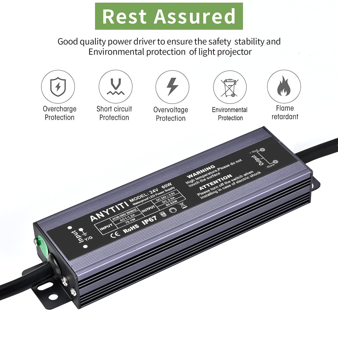 Anytiti Led Driver,Led Power Supply Ip67 Waterproof Output 60W Dc24V 2.5A 3-Prong Plug 4.5Feet (24V 60W)