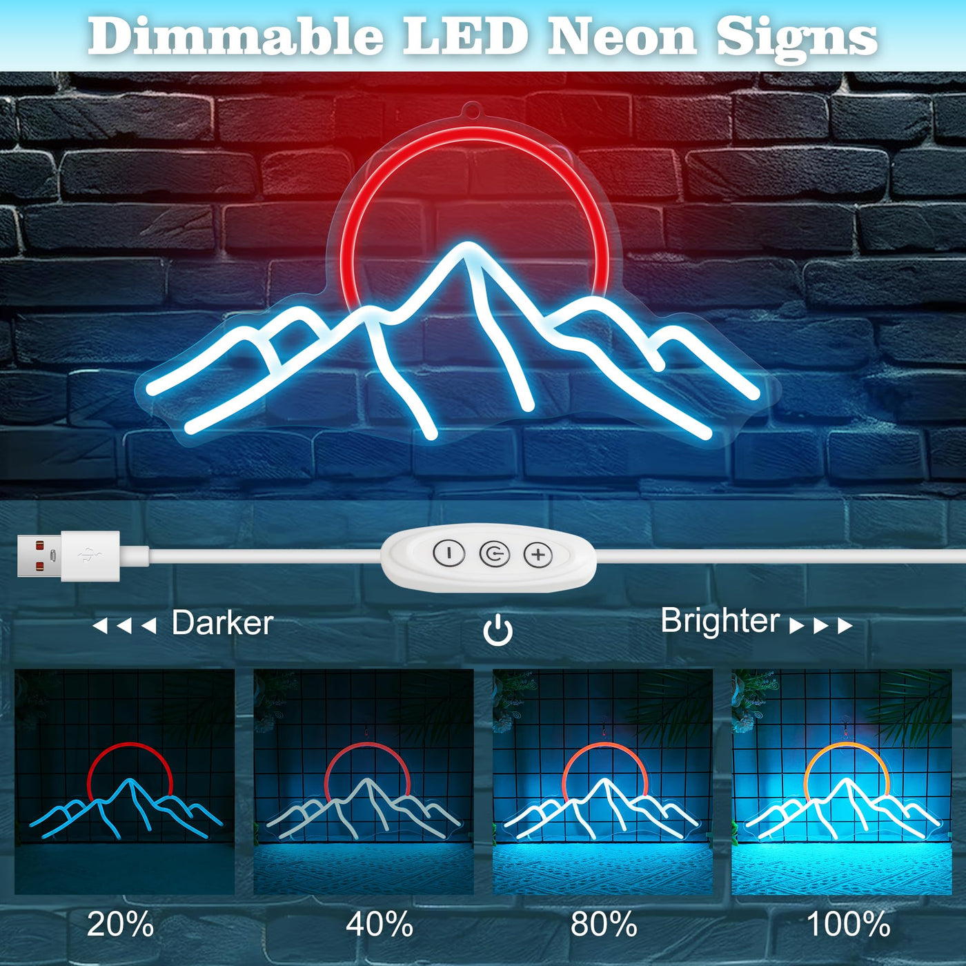 Anywin Dimmable Mountain Neon Sign - Sunrise Sunset Led Wall Art For Bedroom & Living Room Decor