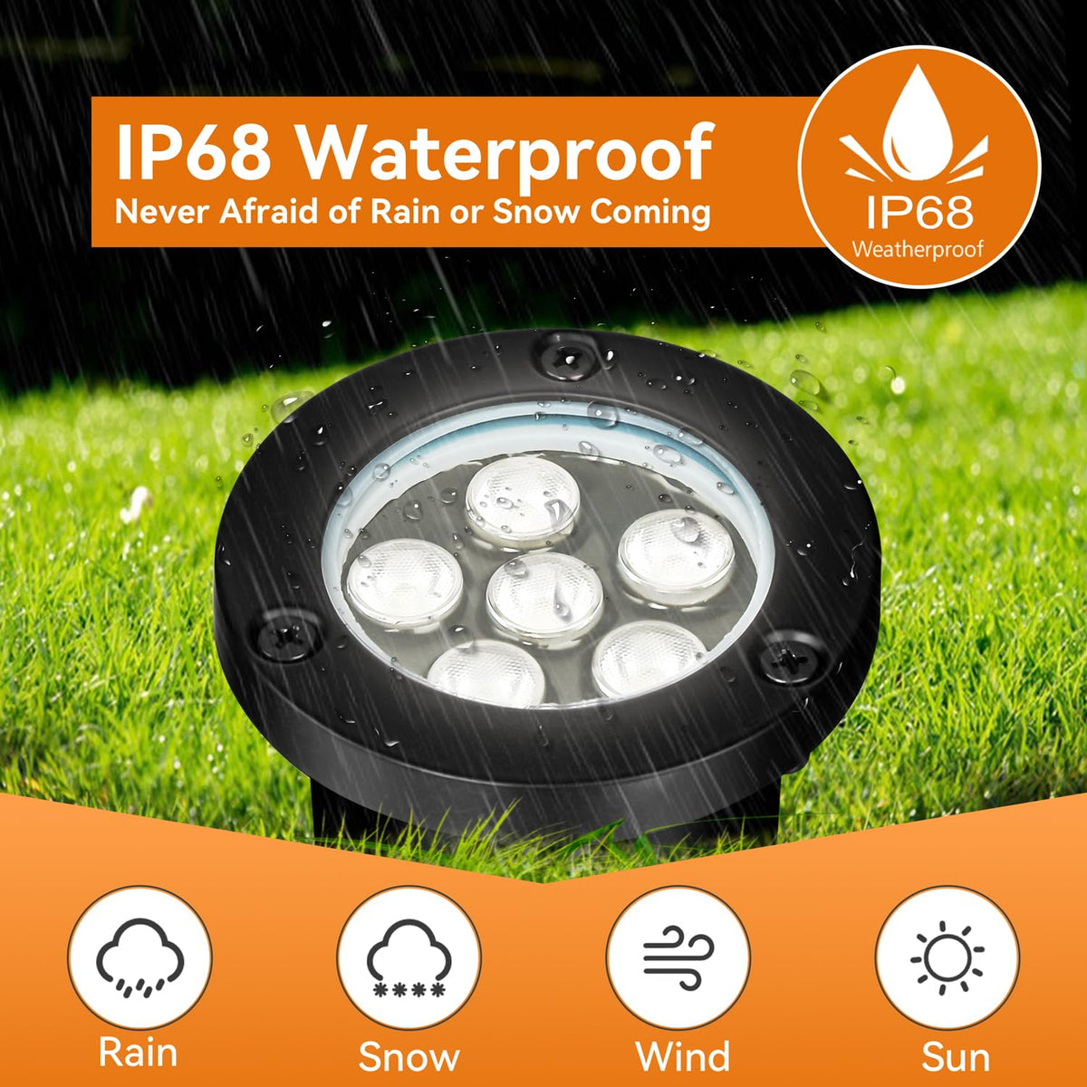 Q: Are these landscape lights waterproof and suitable for outdoor use?A: Yes, these landscape lights have an IP68 waterproof rating, making them durable and suitable for outdoor use in various weather conditions.