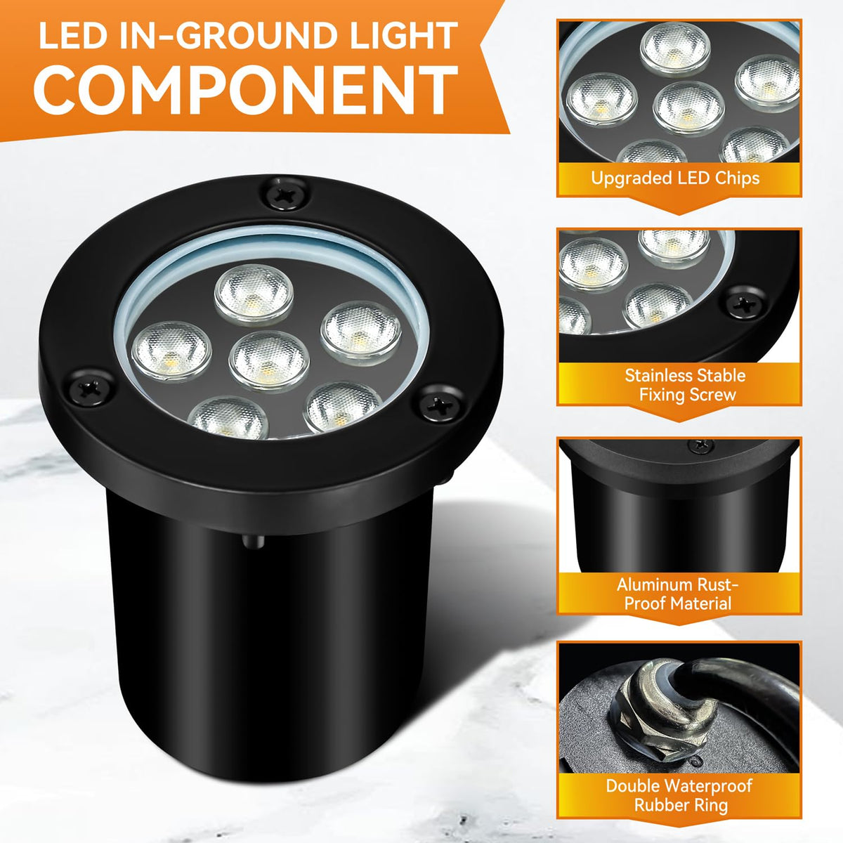 Aoaxl 6W Led Landscape Lights, 110V 120V Well Lights Ip68 Waterproof 5500K Cool White Outdoor In-Ground Lights For Yard, Garden Patio, Pathway,8 Pack