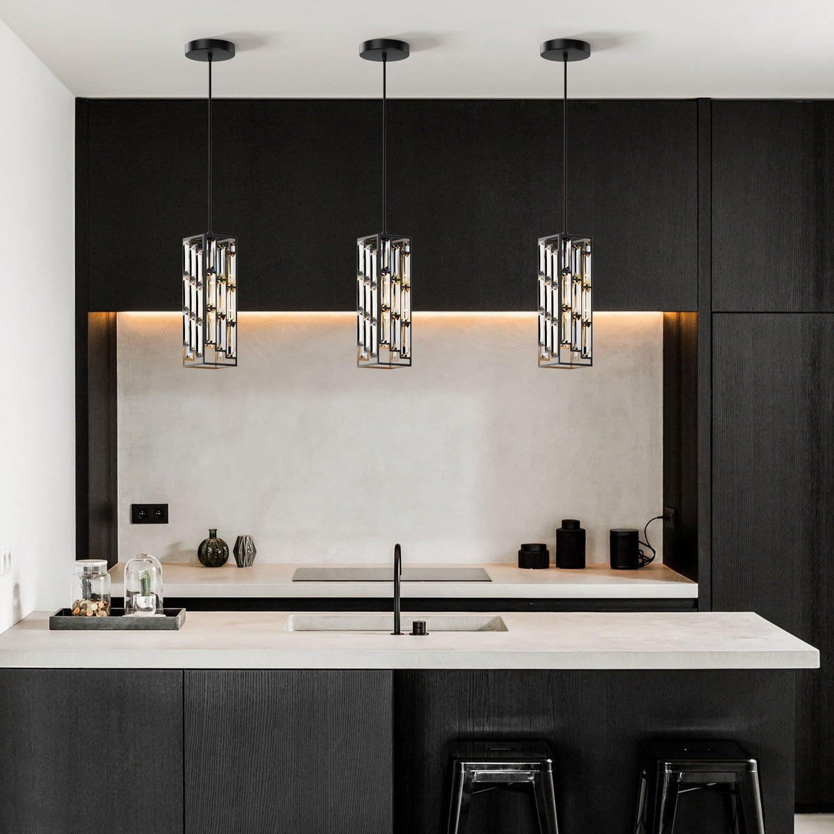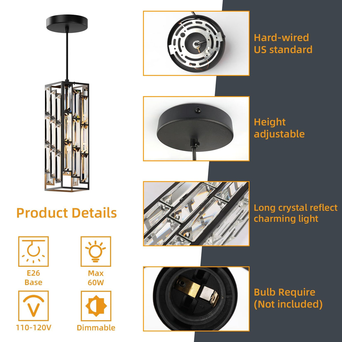 Aoceley Black Pendant Lights Modern Pendant Light Fixture, Mini Crystal Pendant Ceiling Light, Pendant Light For Kitchen Island,