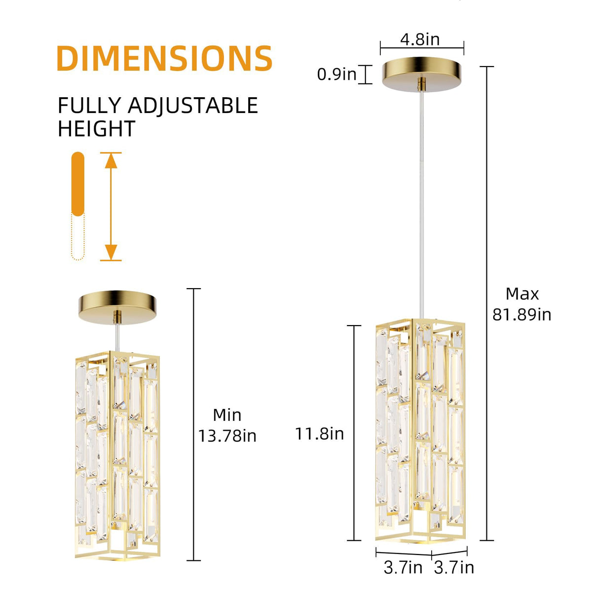 Aoceley Brass Pendant Lights Modern Pendant Light Fixture, Mini Crystal Pendant Ceiling Light, Pendant Light For Kitchen Island,