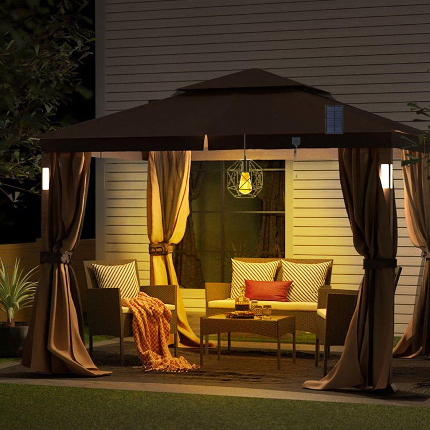 Aofuery Solar Pendant Lights - Black Solar Powered Chandelier for Outdoor Gazebo, Shed, Indoor Use with Pull Cord - Lantern Size