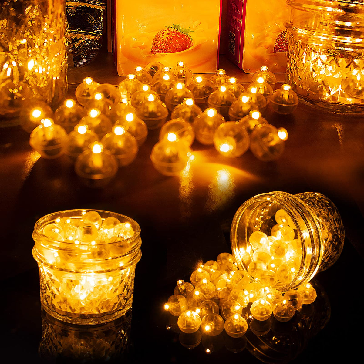 Pack of 100 orange LED balloon lights for extensive decoration.