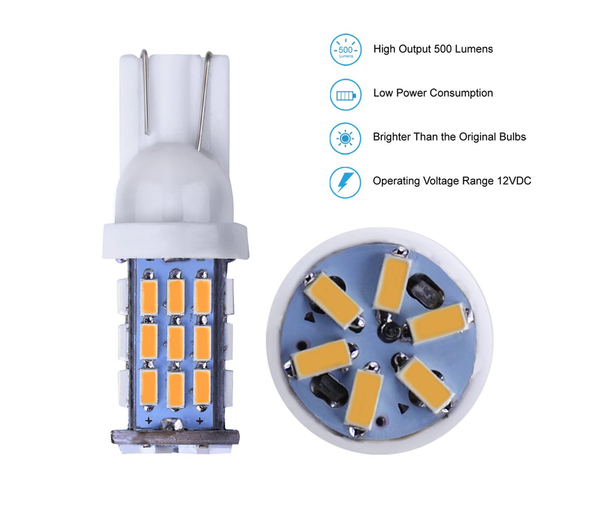 Specifications: *Luminous Flux: 500Lm/bulb *For 12 volts *Number of Bulbs: 20PCS *LED Color: Warm White *Lighting Angle: 360 degree Feature: Installs easily ,direct replacement for the original car bulb Excellent performance,Low temperature, low power .