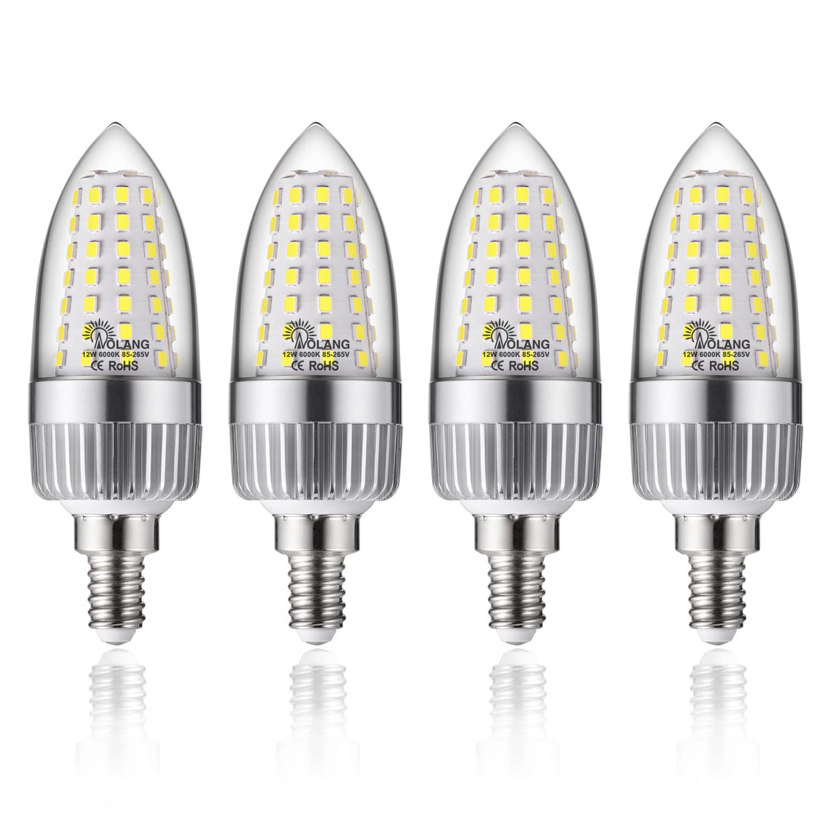 Aolang 12W E12 Led Candelabra Bulbs, Daylight White 6000K, 1200 Lumens,