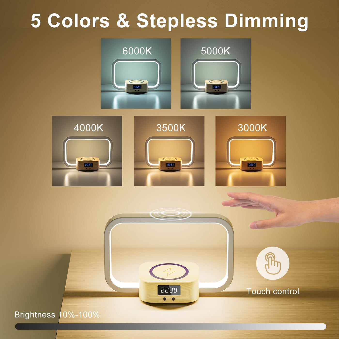 Aontess Table Lamp With Wireless Charger: Touch Bedside Lamp With Usb Port, Clock, Nightstand Desk Lamp With Dimmable For Bedroom, Living Room, Office, Reading…